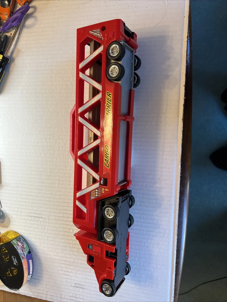 This vintage 1997 Mattel Hot Wheels car hauler is a must-have for any diecast collector. The red plastic material gives it a unique look that is sure to catch the eye. With its semi truck trailer and car carrier, it can transport up to two cars at once. The brand and model are Mattel Hot Wheels, and the vehicle year is 1997. This car hauler is perfect for anyone who loves cars and wants to add a unique piece to their collection. IMO excellent barely used great tread. 19x3x5(+)”, 1 lb .5oz Passes state inspections.