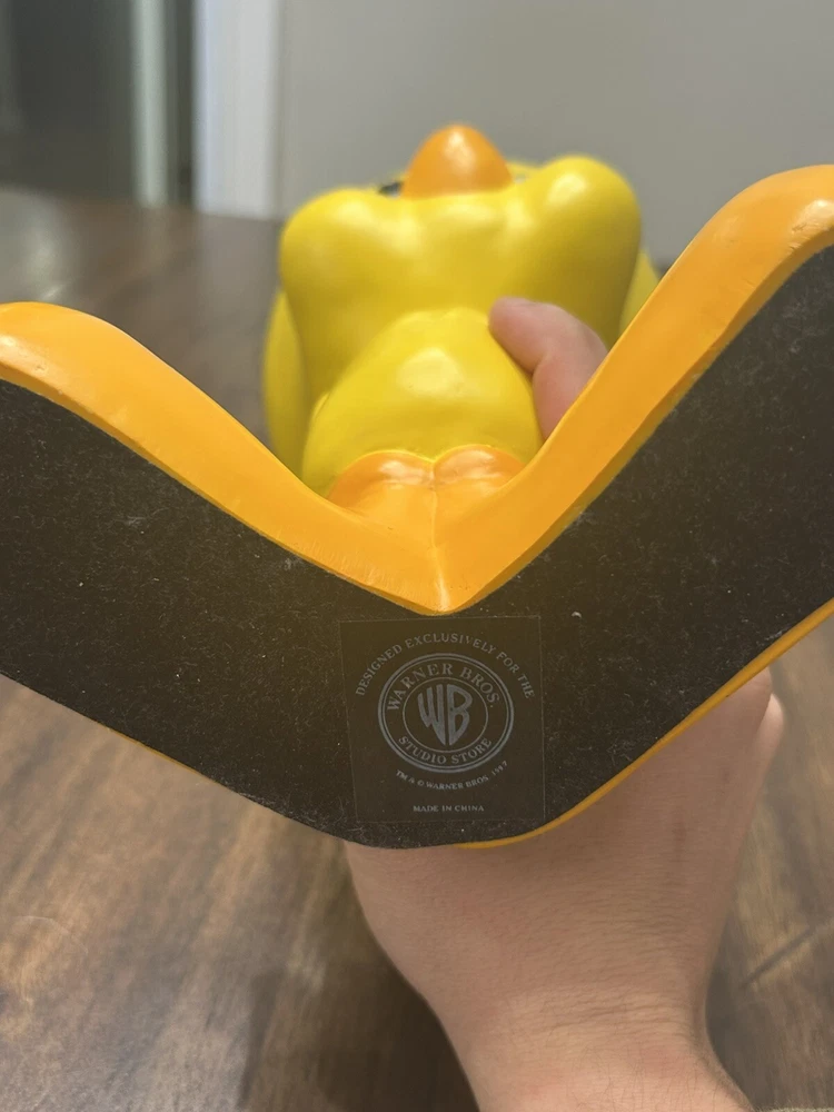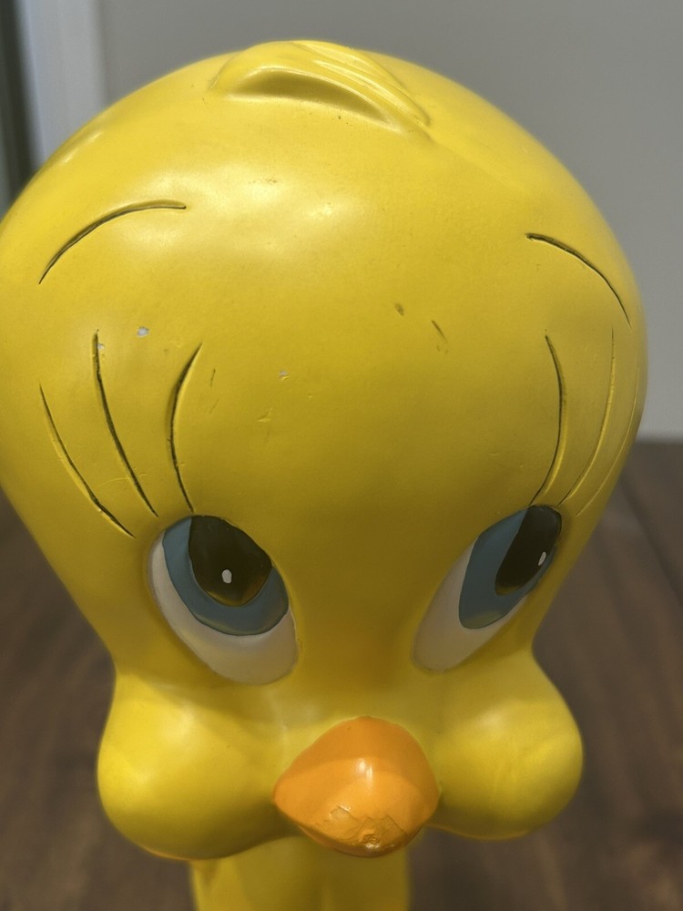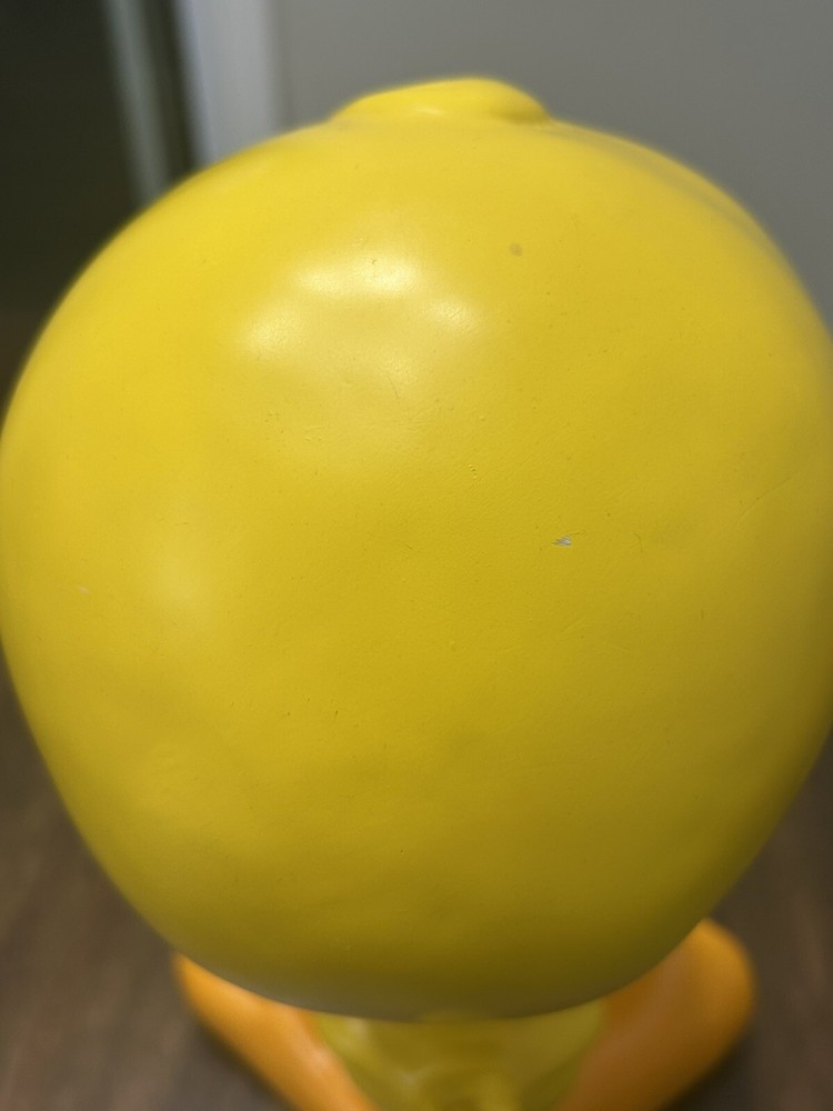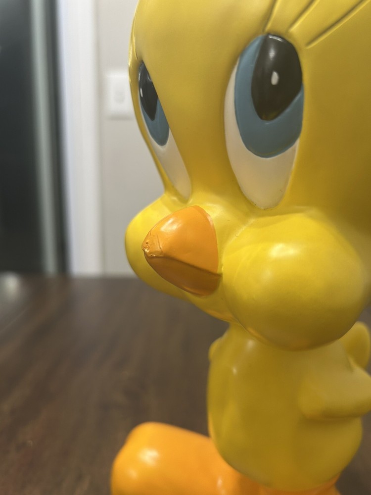 1997 11.5 tweety bird Warner Bros. Statue. Item is in good condition. There’s some wear on the nose as well as the forehead. The wear is depicted in the photos.