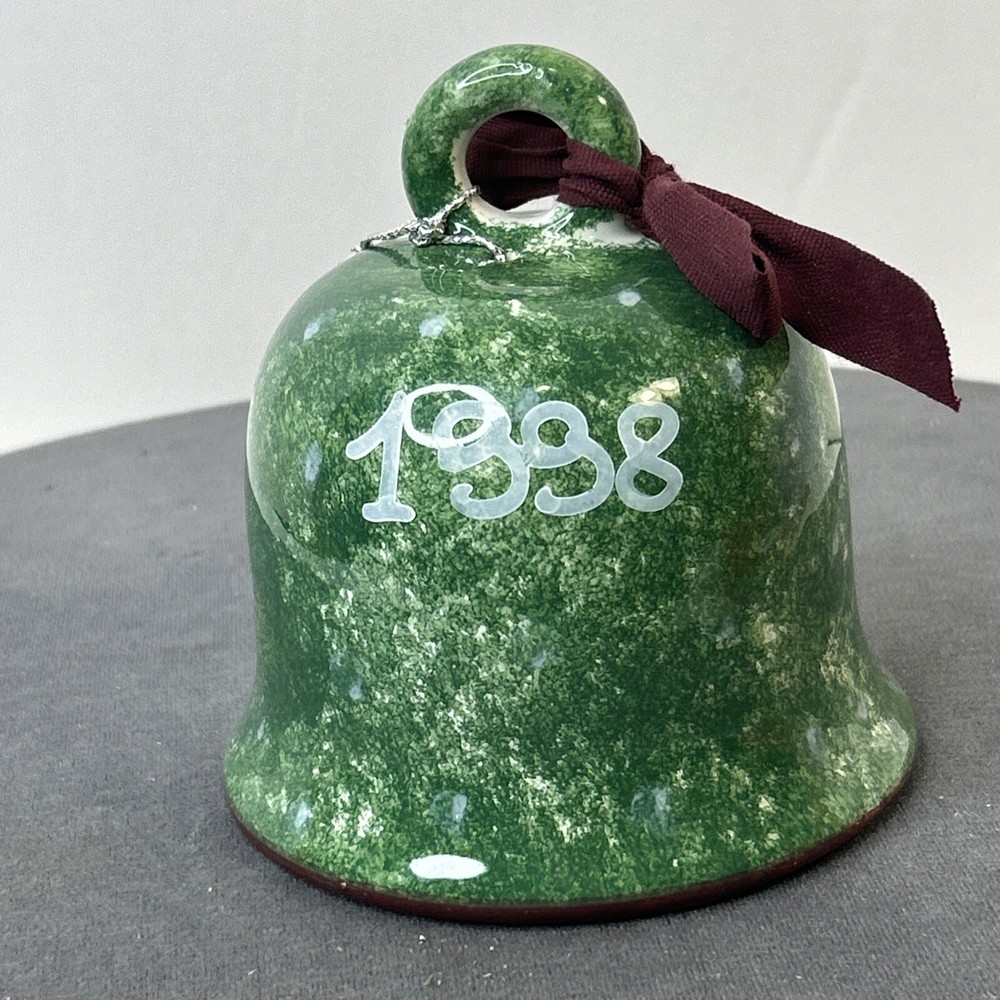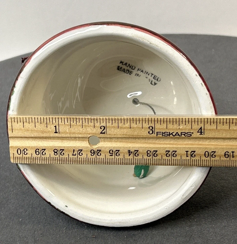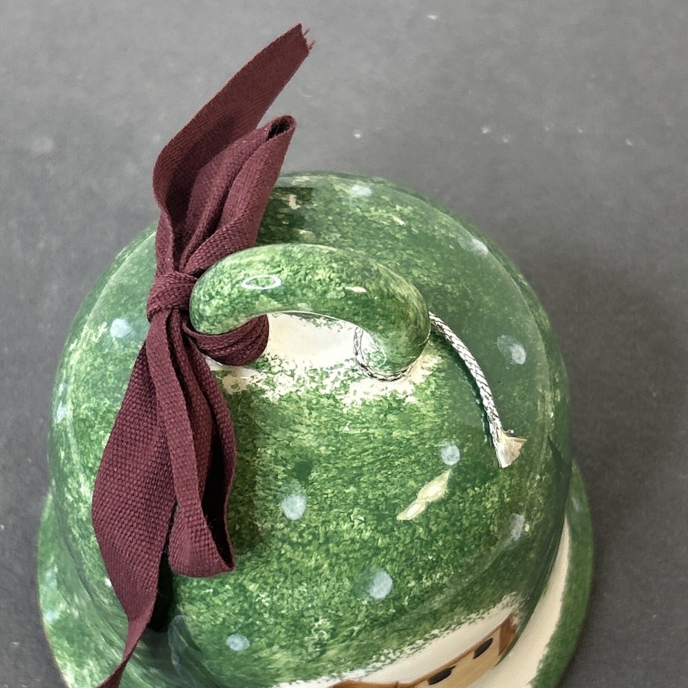 This vintage ceramic bell from Italy is a beautiful addition to any Christmas or winter-themed collection. Hand-painted with intricate details, this bell features a glossy finish and is made with high-quality pottery techniques. The bell is a perfect representation of the art pottery style from the late 20th century. The green color of the bell adds a touch of elegance to the festive décor. The bell is a great gift or souvenir for anyone who loves vintage items or wants to add a unique touch to their holiday decorations. Made in 1998, this bell is a true collector's item that will bring joy for years to come. Vintage Christmas Hand Painted Ceramic Bell Made In Italy 1998, is in excellent vintage pre-owned condition, with NO chips, cracks or repairs. Please review all pictures for proper assessment of its excellent vintage pre-owned condition.