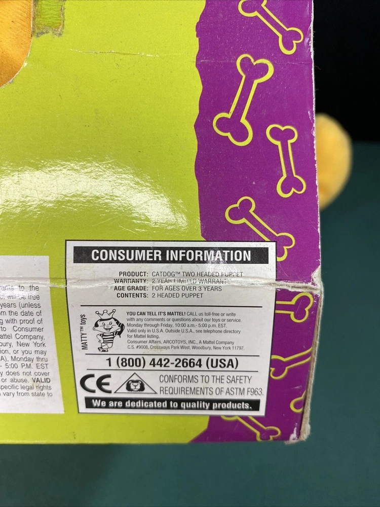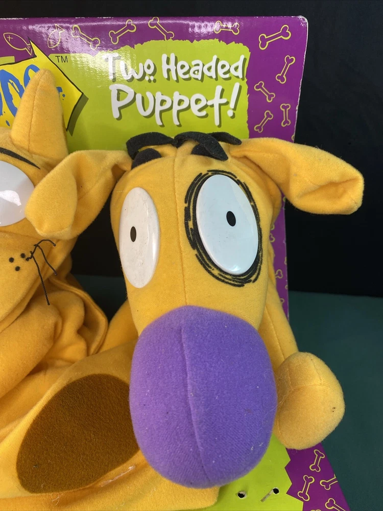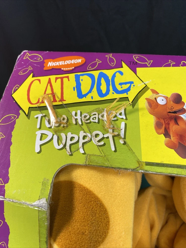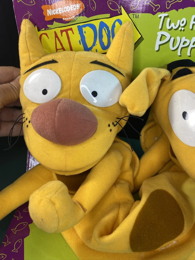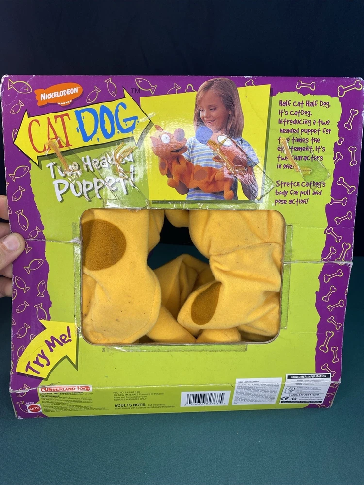 This vintage 1998 Mattel Nickelodeon CATDOG Two Headed Puppet Plush Half Cat Half Dog is a must-have for any toy collector or fan of the beloved children's show. This unique plush toy features the beloved character, Cat Dog, with one head of a cat and the other head of a dog. The plush was manufactured in China by Cumberland Toys and is an excellent addition to any vintage toy collection. With its soft and cuddly material, this toy is perfect for display or play. Don't miss out on the opportunity to own this rare piece of Nickelodeon history. Toys in native packaging, not removed, due to long storage a little in the dust