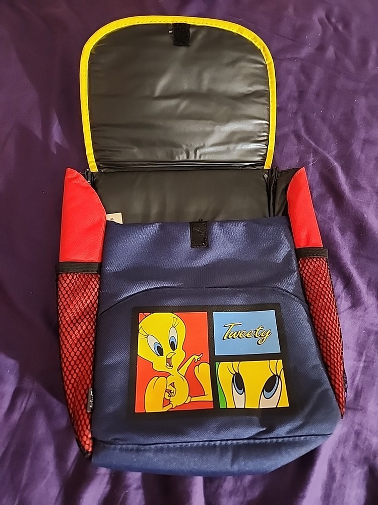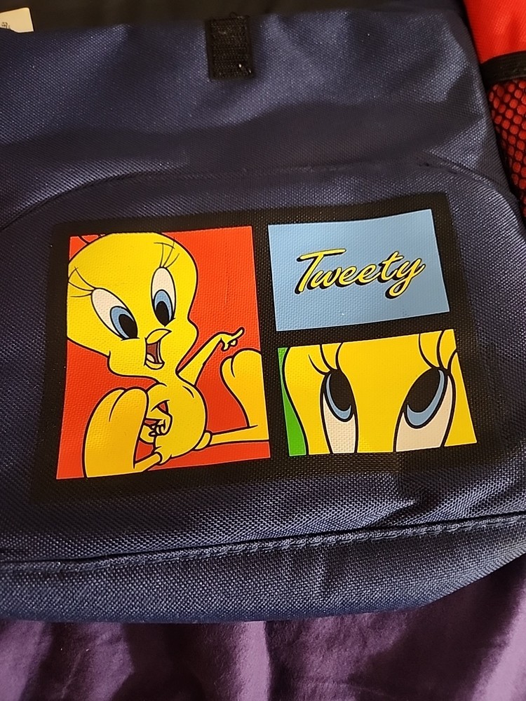 The Vintage 1999 Looney Tunes Tweety Bird Car Litter Bag in red and yellow is a highly sought after and rare collectible item for fans of Warner Bros. Animation. This fabric/canvas bag features the beloved Tweety Bird character from the Looney Tunes franchise, making it a unique piece of animation merchandise. With its multicolor design and cartoon theme, this item is sure to be a standout addition to any collection of animation art and merchandise.