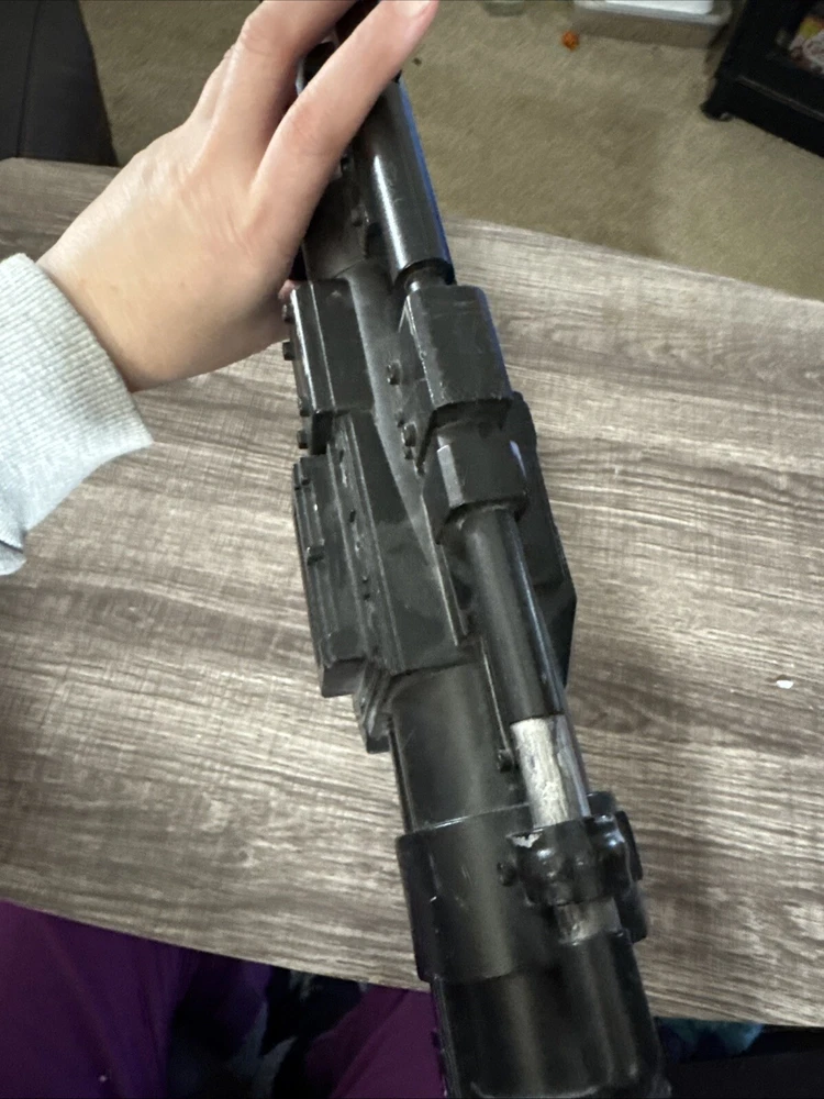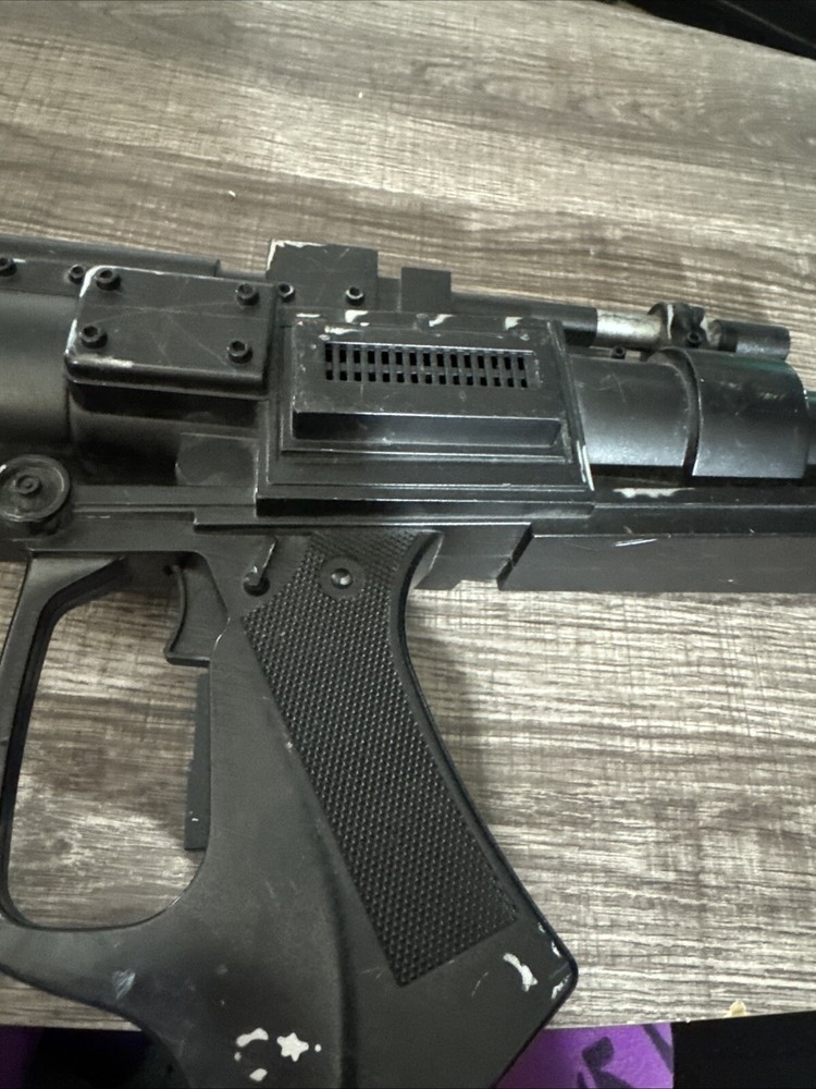 The Vintage 1999 Stars Wars Lights And Sounds Toy Rifle by Lucas Films Works is a collectible toy from the VI: Return of the Jedi movie. Produced by Hasbro for Star Wars Celebration in 1999, this rifle features lights and sounds that add to the immersive sci-fi experience. Being a vintage item, it holds value among collectors of Star Wars memorabilia and is a sought-after piece for fans of the franchise.