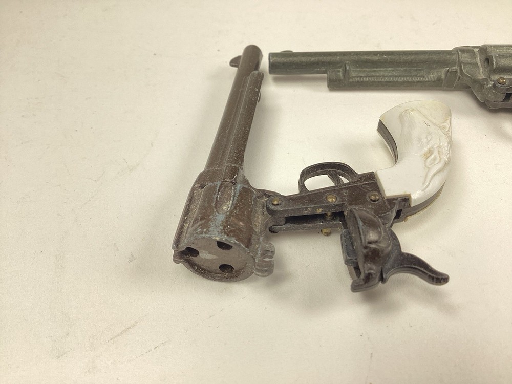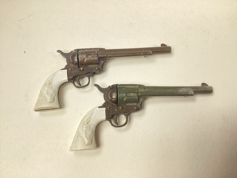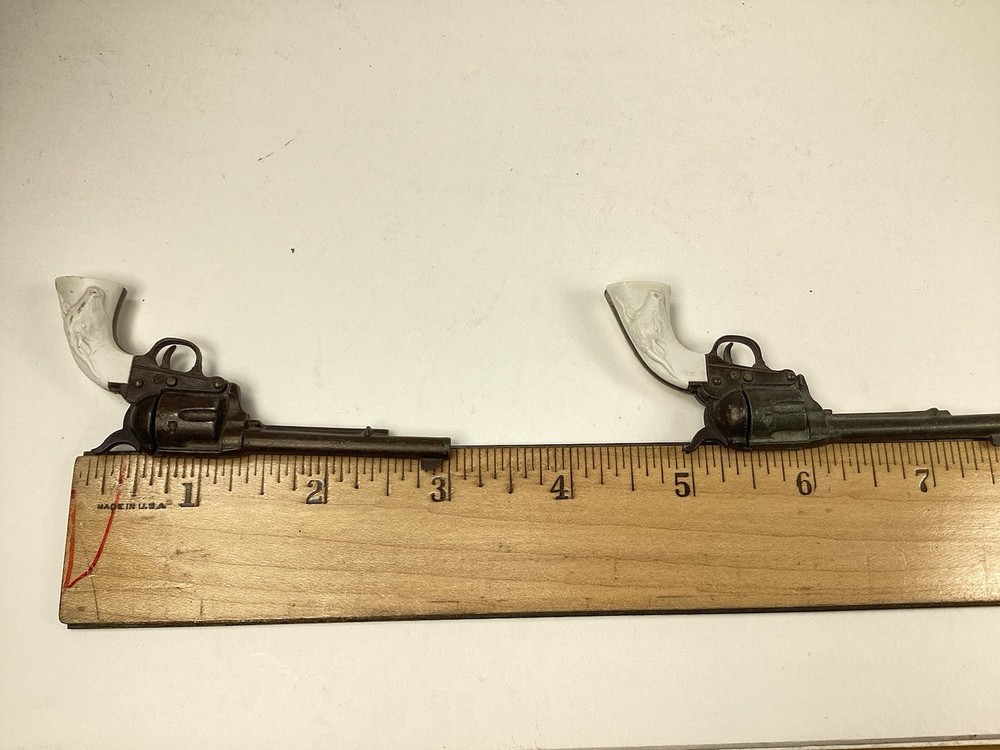 BEING OFFERED 2 MATCH PAIR MARX MINIATURE WESTERN PISTOLS IN NICE CONDITION. PLEASE VIEW ALL PHOTOS AND USE ZOOM TO EVALUATE. THANKS