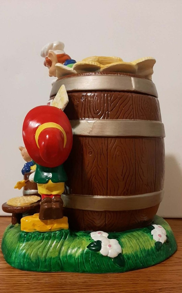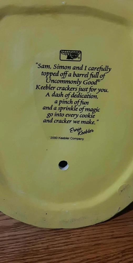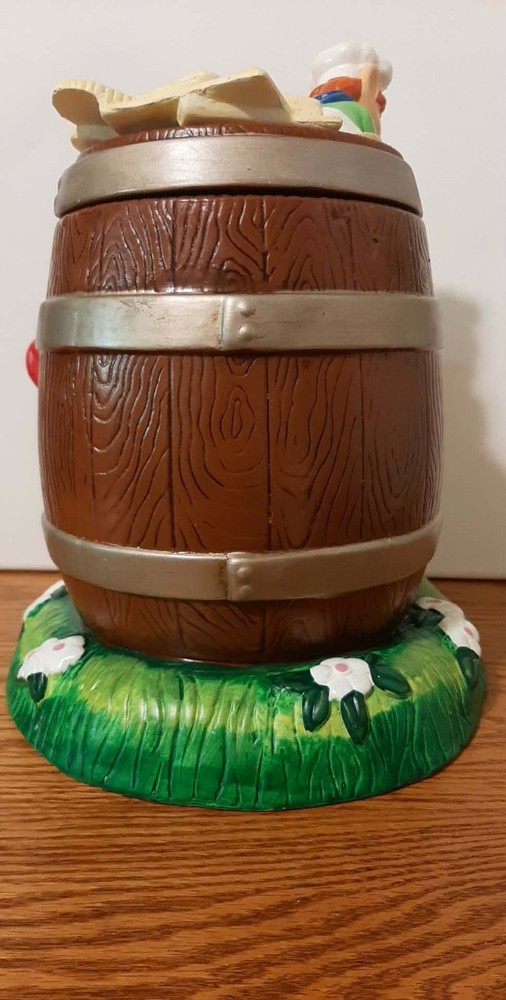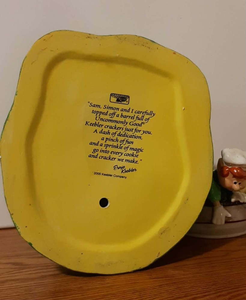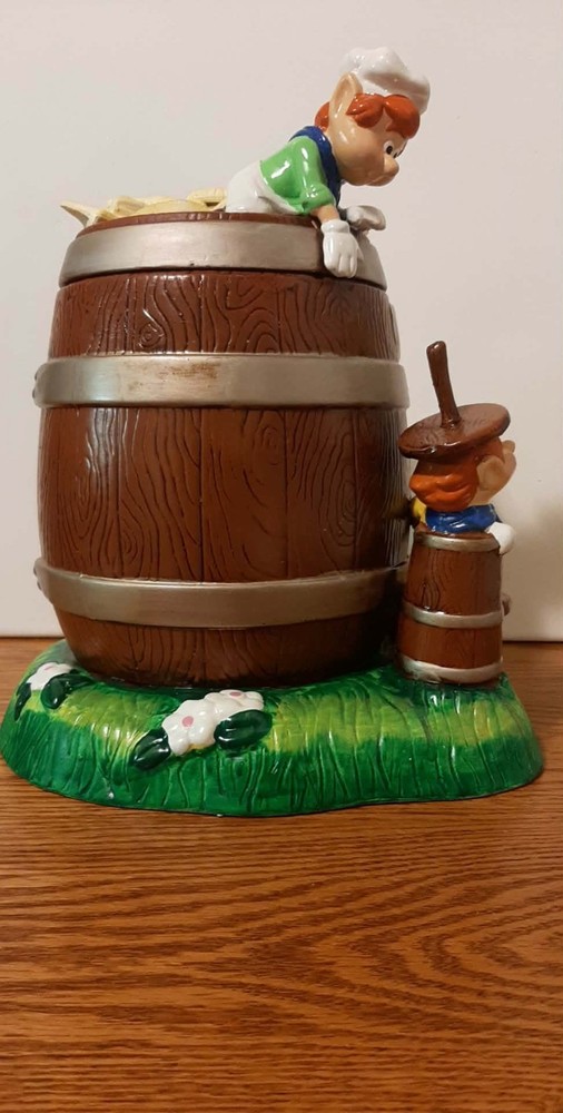 The Vintage 2000 RARE Keebler Cracker Barrel Cookie Jar is a highly sought after collectible item showcasing a retro design from the year 2000. This original Keebler cookie jar, made of ceramic and porcelain, stands approximately 11 inches tall and has a square base measuring about 8 inches in length and width. Perfect for storing cookies or as a unique decorative piece, this vintage advertising-themed item brings a nostalgic touch to any kitchen or home decor.
