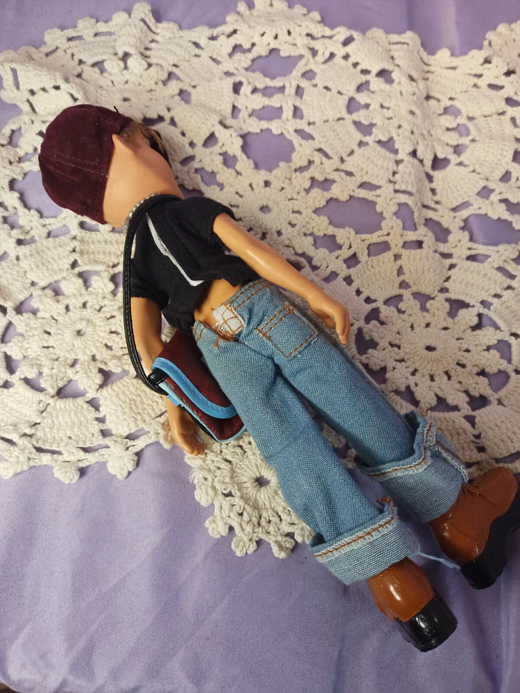 Embrace nostalgia with the 2002 Bratz Boyz Cameron Boy Doll from MGA Entertainment, a must-have for collectors and fans alike. Sporting his signature blonde hair, Cameron comes as a genuine piece from the early 2000s, capturing the iconic era of the Bratz franchise. At 10 inches tall, this boy doll showcases Cameron’s distinct style, complete with a light complexion and piercing blue eyes that reflect his charming persona. The doll, a representation of the early 2000s fashion trends, does not come with packaging, emphasizing its authentic vintage value. As an original MGA Entertainment creation, it embodies the memorable design and character of Cameron, making it a cherished single unit for those who appreciate the timeless allure of Bratz Boyz.
