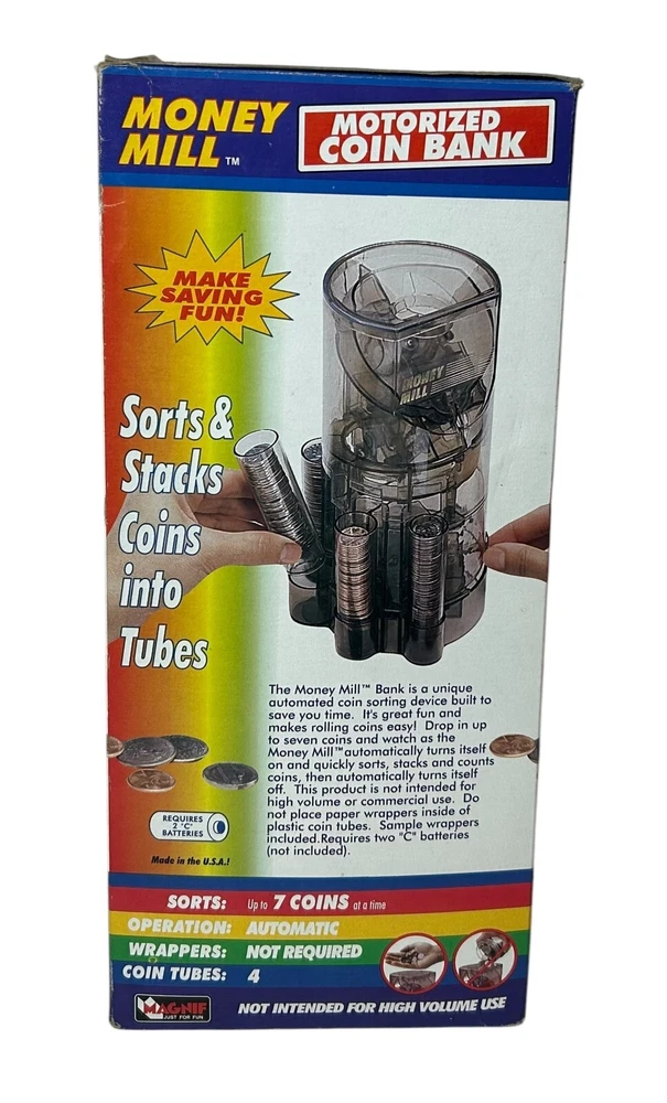 ~~~ Vintage 2003 Magnif Money Mill Motorized Coin Sorter Bank Sorts Stacks Coins USA ~~~ - Tested = Works - Comes with batteries