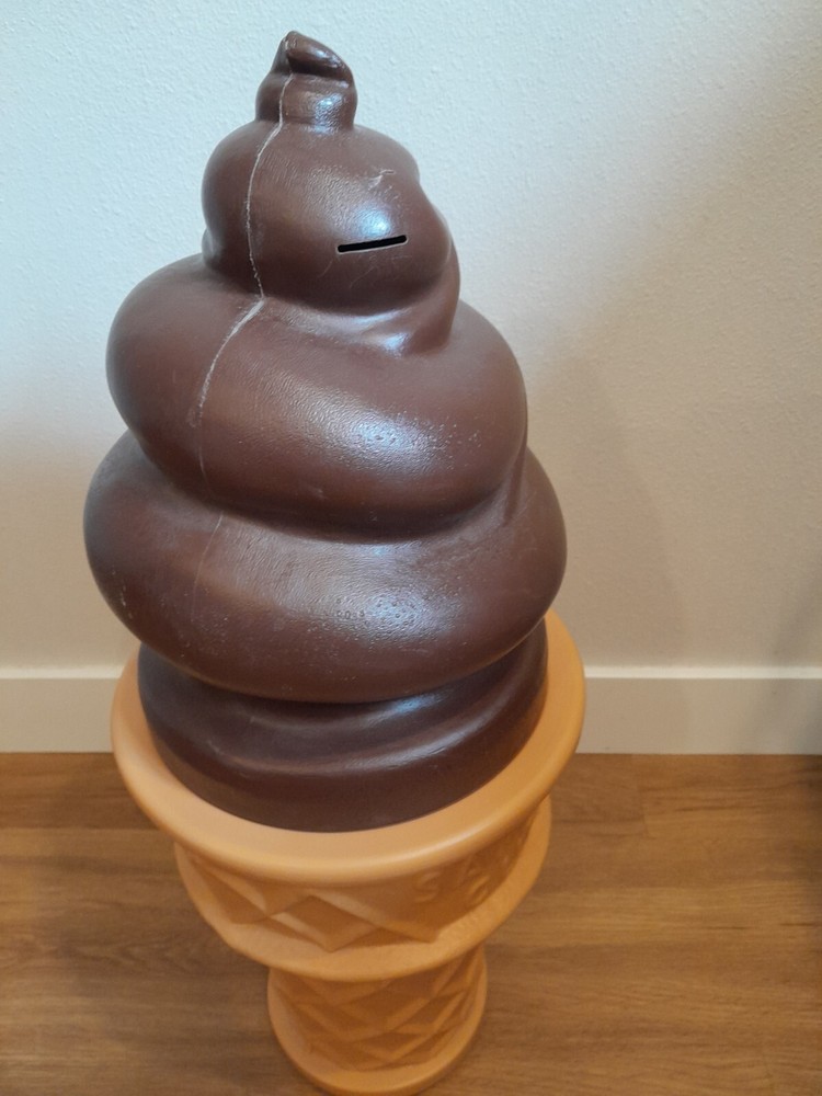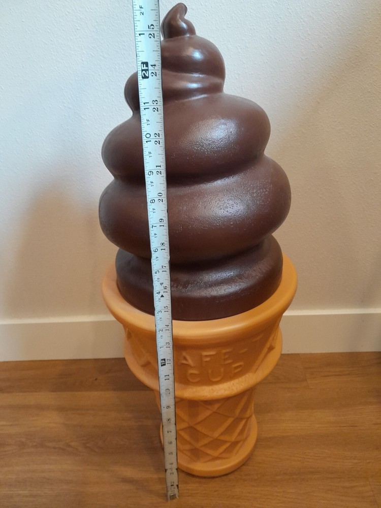 This vintage SAFE-T CUP bank is a delightful addition to any collection. Measuring 26 inches tall, it features a chocolate swirl design that is sure to bring a smile to your face. Made from durable plastic, this bank was manufactured in the United States and is an original piece. Perfect for collectors of all ages, this bank is a unique and fun way to save your spare change. Whether you display it on a shelf or use it to stash your coins, this piece is sure to make a statement. Add this charming vintage bank to your collection today! No cracks.