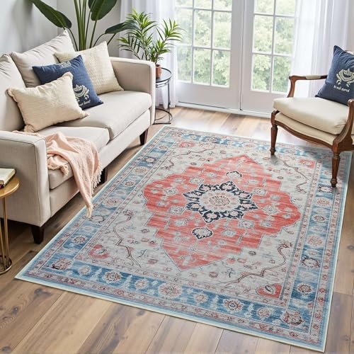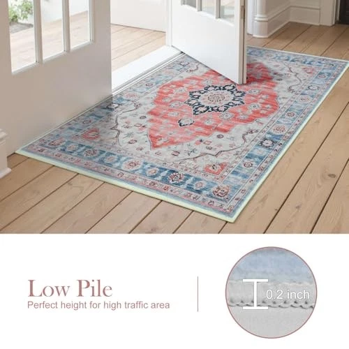 Return Policy Fast Delivery Trusted seller 3x5 Area Rug, Vintage Living Room Rug with Non Slip Backing, Lightweight Washable Area Rug, Low Pile Water Repellent Non-Shedding Carpet Entry for Bedroom, Bedside, Dining Room, Entryway, Red Blue Product Description Soft Area Rug: Our washable area rug is made with soft faux wool fibers comfortable on barefoot and easy to maintenance. The edges are reinforced Non-slip Backing: The bottom of the washable rug has a soft TPR rubber backing to keep it firmly in place on the floor, preventing shifting and slipping. No additional rug pad required Machine Washable: Machine washable carpet makes cleaning easier! Low pile design keeps most dirt on the surface. The surface of the carpet is water repellent, so if t is an accidental spill, just wipe it up with a towel Beautiful Design: This area rug features a vintage design with a gorgeous floral pattern and color palette that blends perfectly with your home décor Multifunctional: The low pile design of this area rug allows it to be easily placed behind a door without interfering with the opening of the door. You can place it anyw you like, rugs for living room, rugs for dining room, kitchen, office, bedroom etc TIPS: Packing and shipping of your rug may cause temporary creases, reverse rolling or put some heavy thing is the fastest and easiest way to remove creases in your area rug Shipping Returns Payment Shipping Shipping is FREE to all addresses other than APO/PO boxes in the lower 48 states. All our stock ships from US-based warehouses. Shipped via USPS or UPS (depending on location and package weight) Unless stated otherwise, all orders will ship within 24-72 hours of your payment being processed. Check our feedback to see the great reviews of FAST shipping we offer. Returns Seller does not accept returns Payment We currently accept payment via eBay managed payments only. Once payment is cleared, we will dispatch your shipment within 1-3 business days. Please refer to the "Shipping" tab for more information regarding shipping speed to your destination.