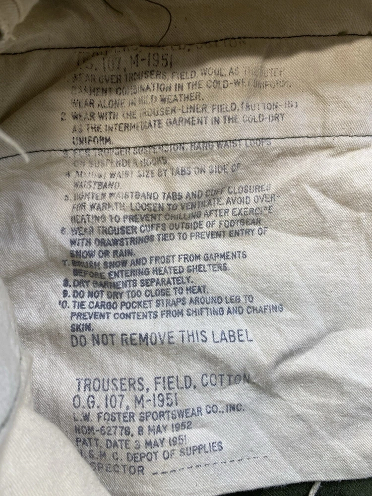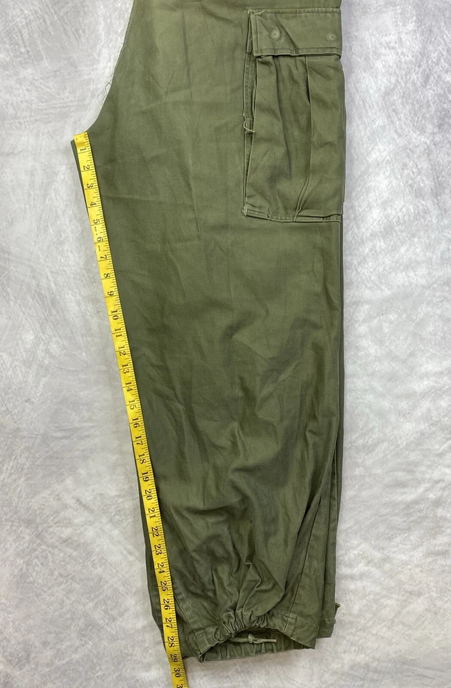 Vintage: Yes Season: Fall, Spring, Summer, Winter Theme: Army, 50s, Military Type: Pants Accents: Button, Zipper Brand: L.W. Foster Sportswear Co., Inc. Material: Cotton Fit: Regular Color: Green Country/Region of Manufacture: United States Leg Style: Flared Pattern: Solid Features: Pockets Occasion: Casual, Travel, Workwear Product Line: Unknown Department: Men Closure: Button, Zip Style: Cargo Size Type: Regular Garment Care: Machine Washable Pocket Type: Cargo Pocket Fabric Type: Canvas Front Type: Flat Front Inseam: 30 in Waist Size: 36 in Size: M