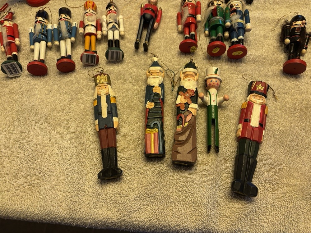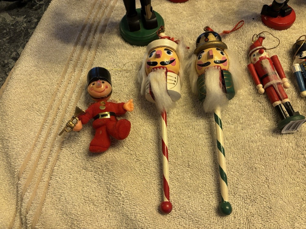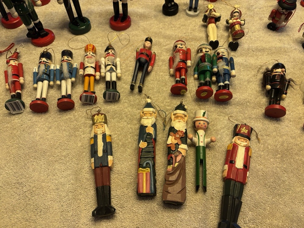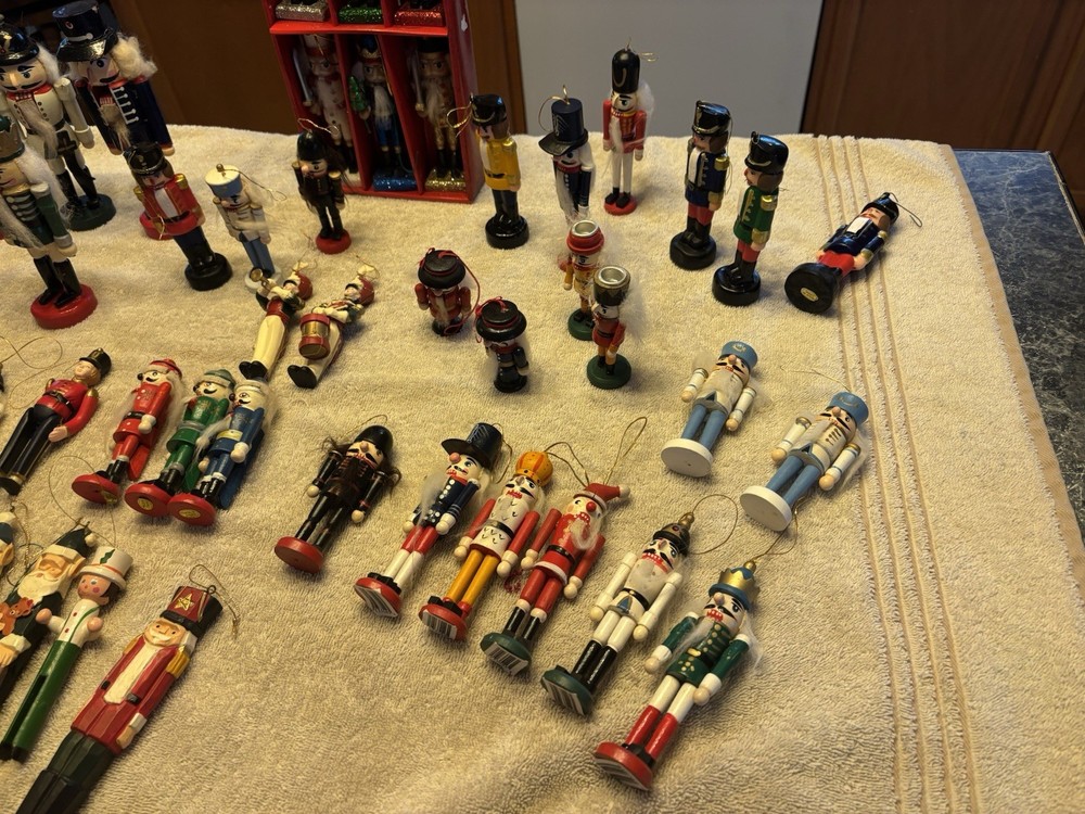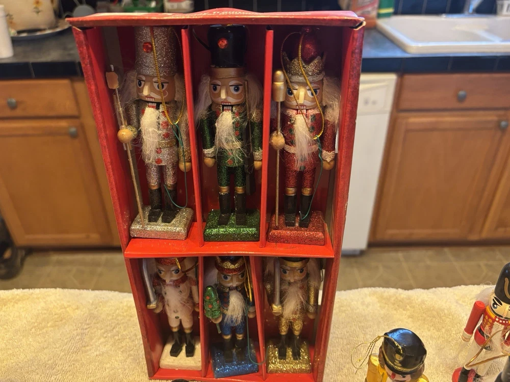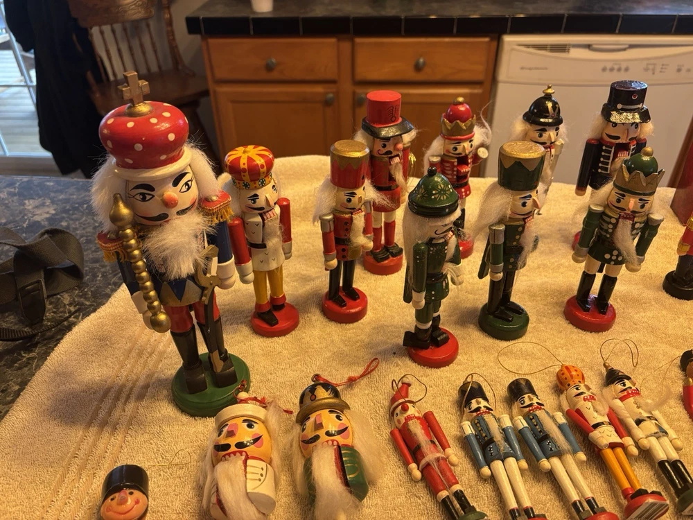 Home accents 6 figure nutcrackers, 30 5 inch variety of nutcrackers soldiers, and various kings and candle holders that are made in nutcracker size. 9 inch larger nutcrackers with one 8 inch. Some 6 inches with total of 56 small to large. All in good condition was my grandmothers collection.