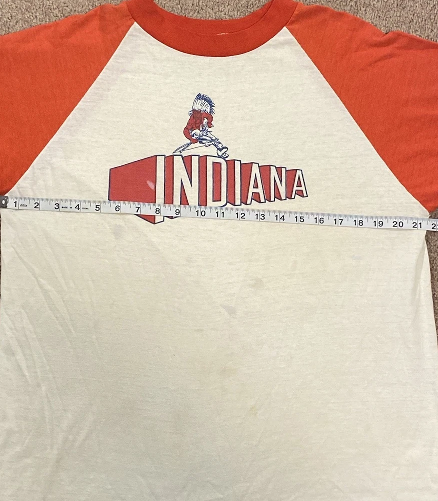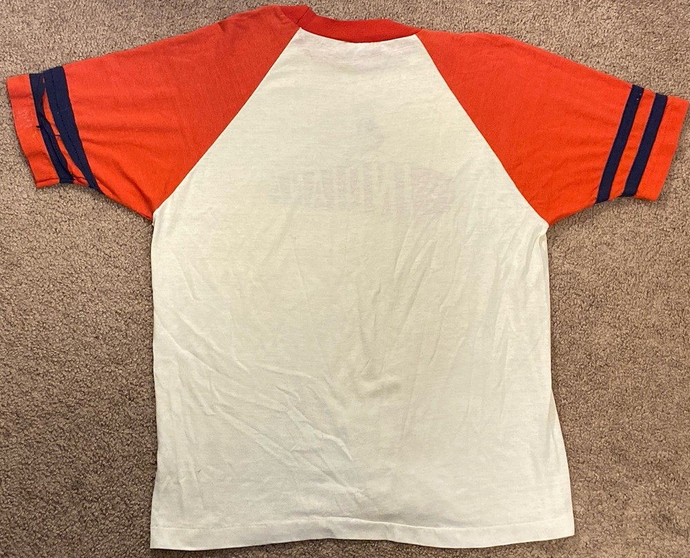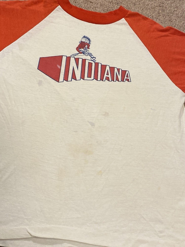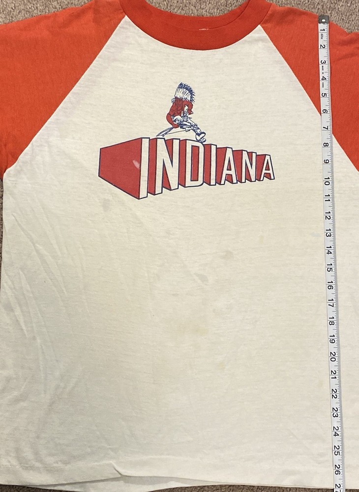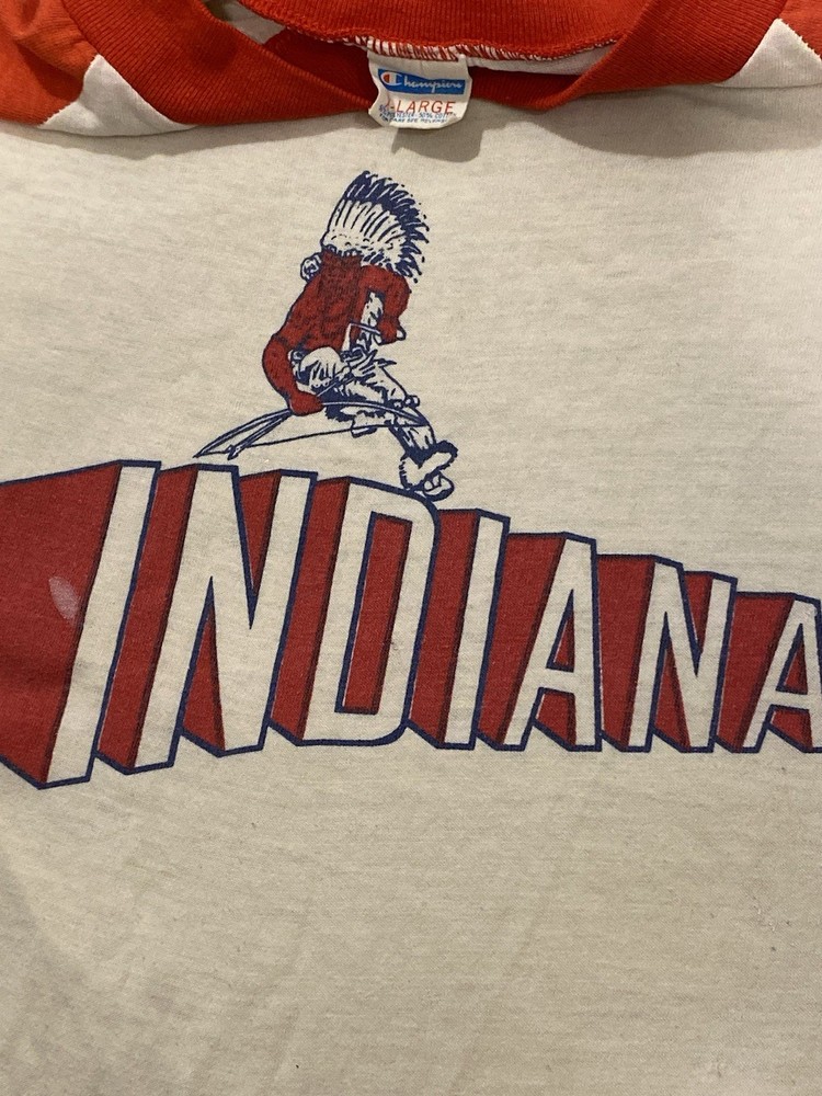 Vintage 70’s IUP Indiana University Indians Champion Blue Bar Water Print T-Shirt Sz XL