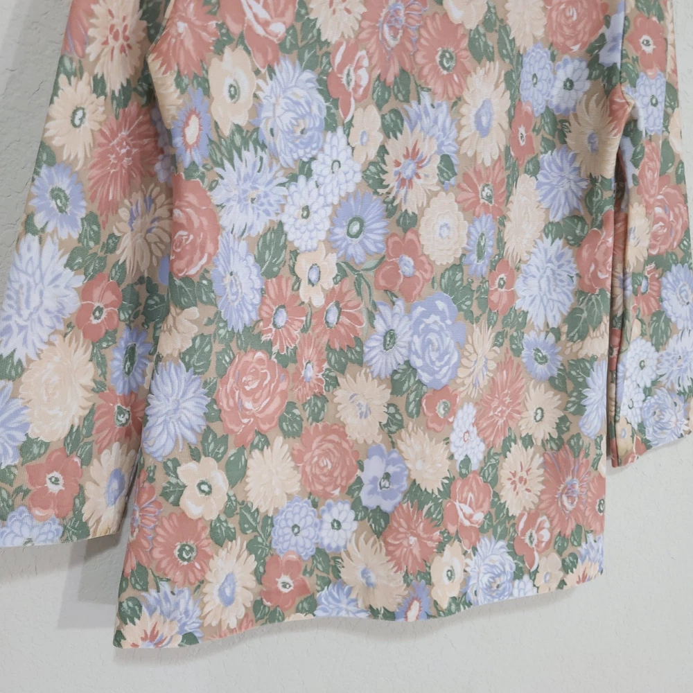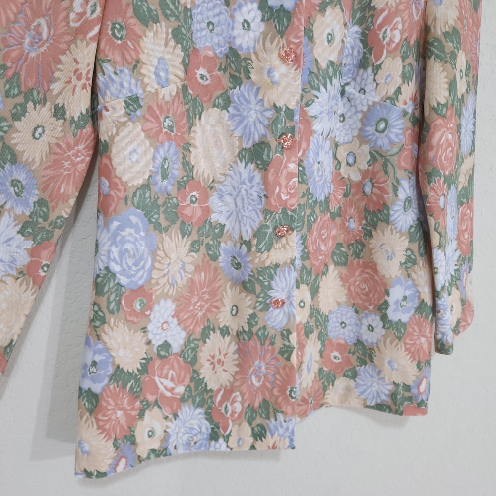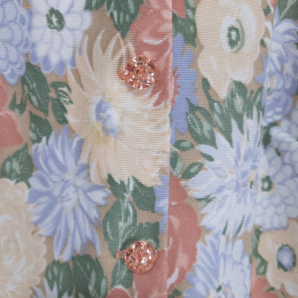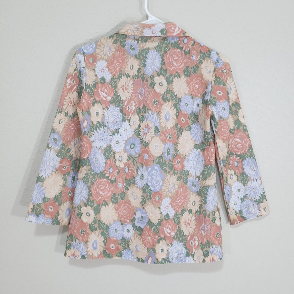 Vintage Floral Blouse SIZE: No size tag. Based on measurements, seems around a size XS / S *** ~ Approx measurements in pics CONDITION: Preloved and in Good Condition. No holes, tears, stains FABRIC: No Fabric Tag - But feels like a vintage polyester DETAILS: ~ Floral Print ~ Seems handmade. No tags ~ Vintage Late 60s or 70s ~ Collared V Neckline ~ ¾ Sleeves ~ Sparkly peach colored buttons ~ Button Closure, Button up, button down ~ Casual, Retro, True Vintage *** Make sure it fits - Sizing varies between brands and decades. It's best to know your body measurements and compare them to clothing measurements and your preferred fit. If you need help on how to do this, or additional measurements, let me know. I will be happy to help.