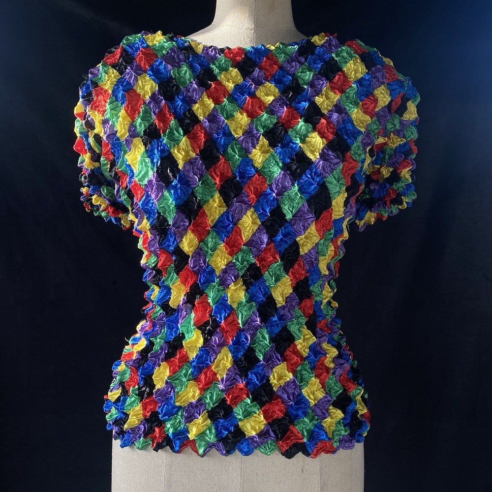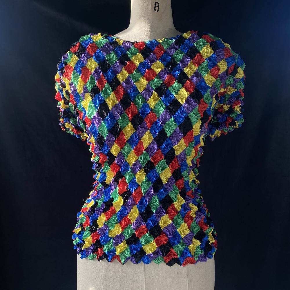 Amazing color full textured blouse ! No marked size but fit M would fit small or XS as well! I. Great vintage condition DM for any question