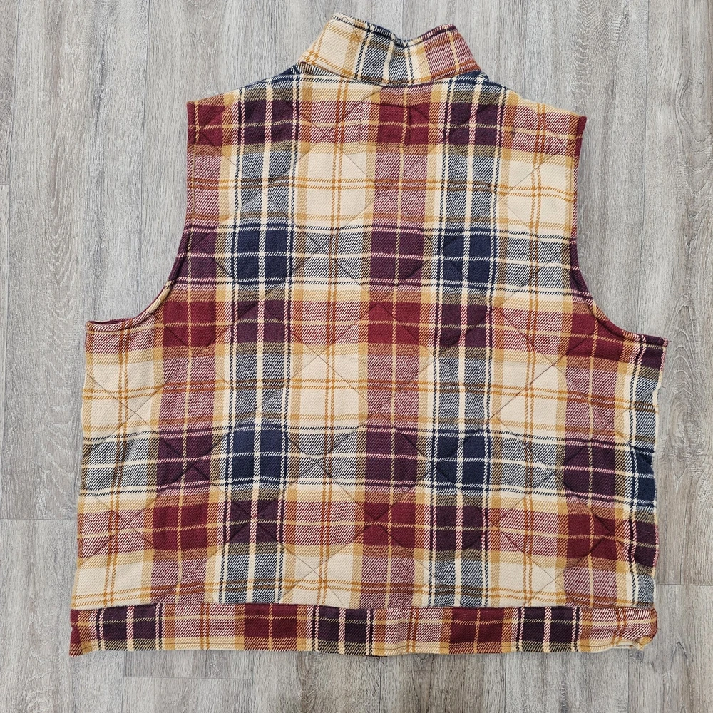 The Vintage 80s 90s Natural Reflections Women's Vest in size 2X is a retro piece perfect for casual occasions. Made from acrylic with a cotton blend lining, this sleeveless vest features a full zip closure and a multicolor plaid pattern. The regular fit and outdoor-themed design make it a stylish and comfortable addition to any wardrobe, especially for those who love nature and appreciate vintage fashion from the 80s and 90s. Easy to care for with machine washable instructions, this vest is a unique and versatile piece that can be personalized to suit individual style preferences.
