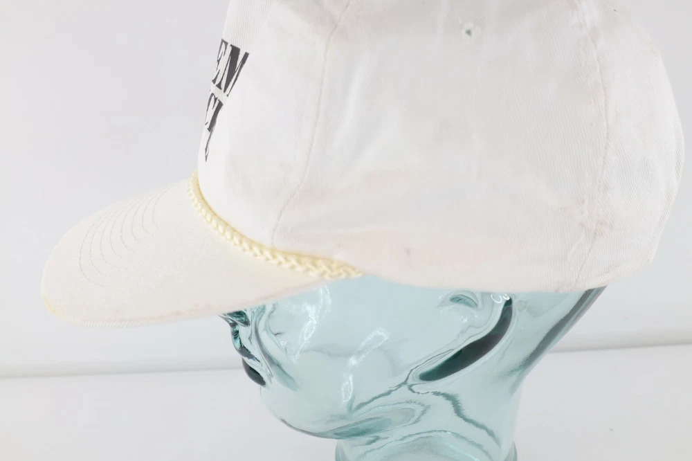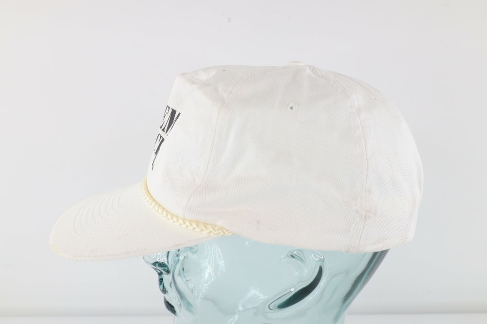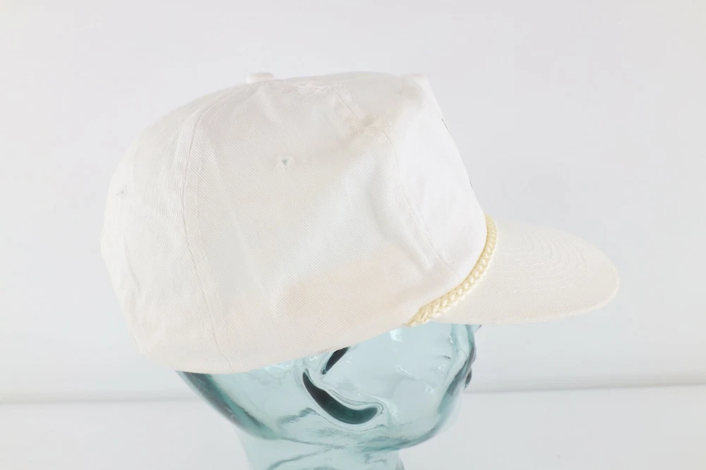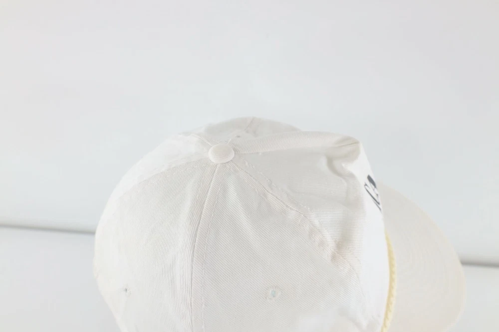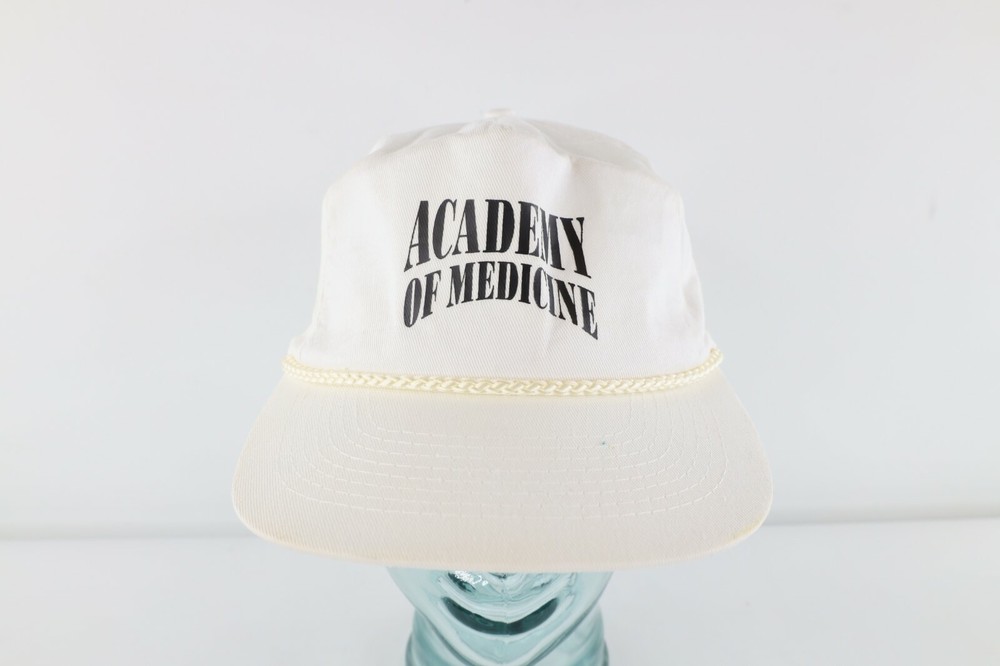 Vintage 80s Academy of Medicine Spell Out Roped Snapback Hat Cap White Cotton Hat Has stains on front, back, both sides, and inner lining and yellowing on inner lining White Snapback Cotton Blend US Shipping is FREE Also I am part of the Global shipping program. Check out my other items in my store! White Hat Bin