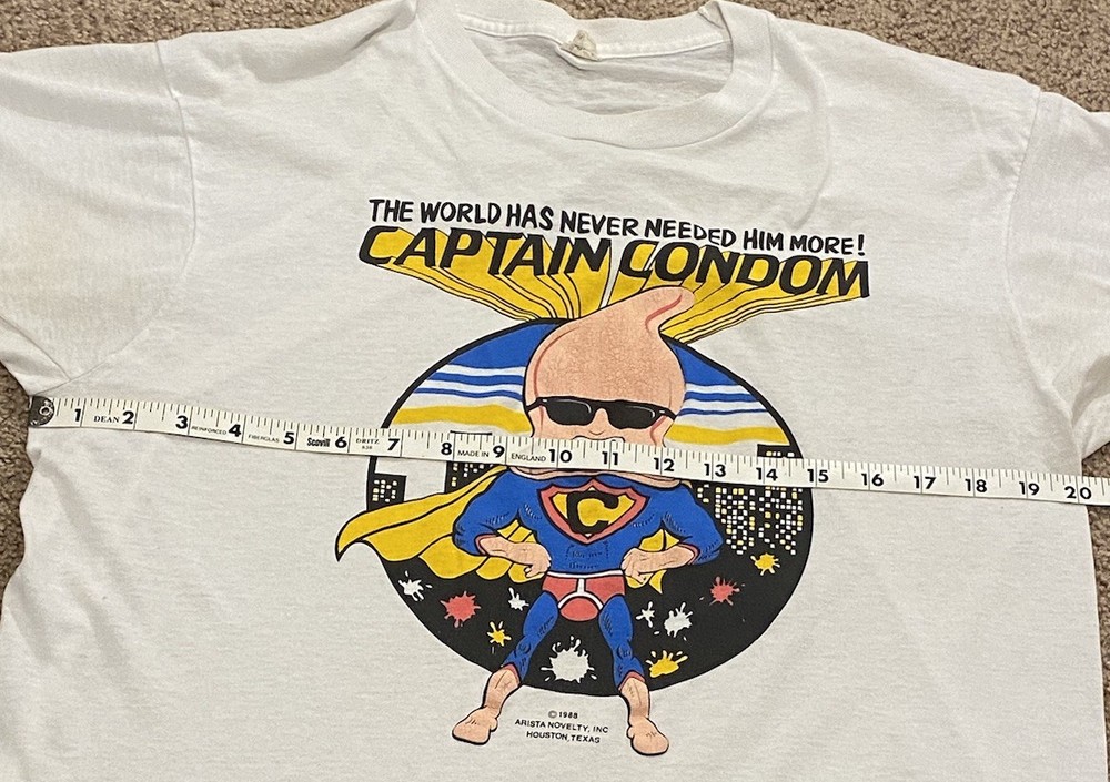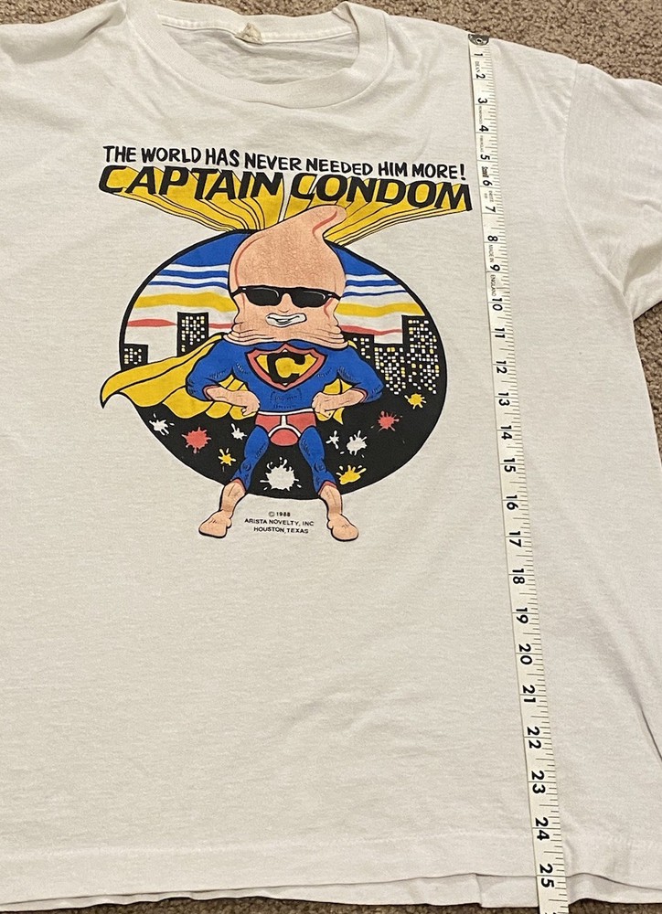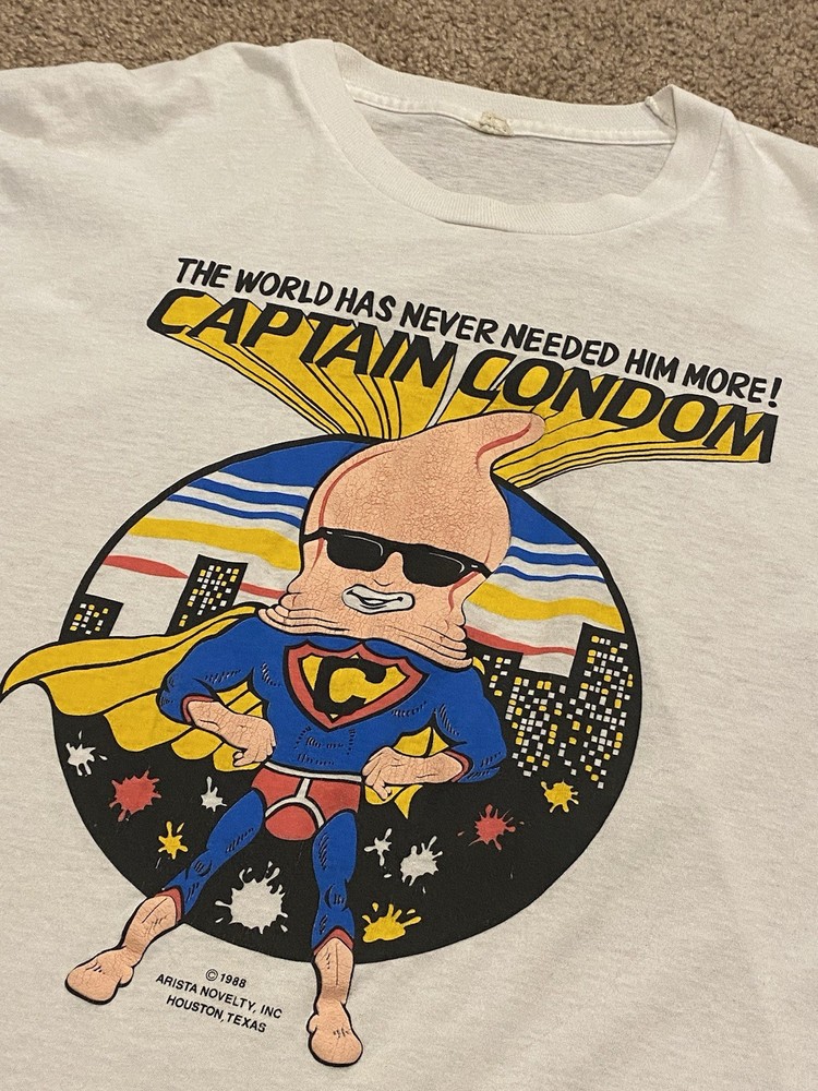 Vintage 80’s Captain Condom T-Shirt Men’s Size Medium Raunchy USA Made Cotton No real flaws. Please view all the photos for a better view of size, color, flaws and more.
