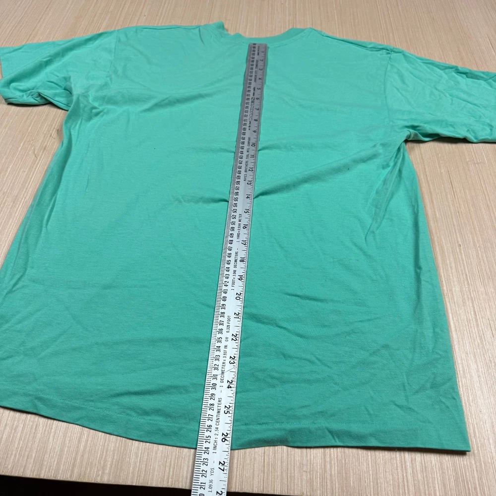 Some small marks as pictured. No rips or holes. Measurements shown in pictures. Tagged XL. Runs small. Made in USA. Single stitch design. If you have any issues with your purchase, please contact me before leaving feedback. I will resolve your issues quickly. Thank you.