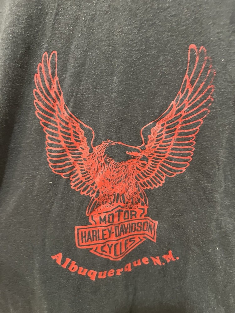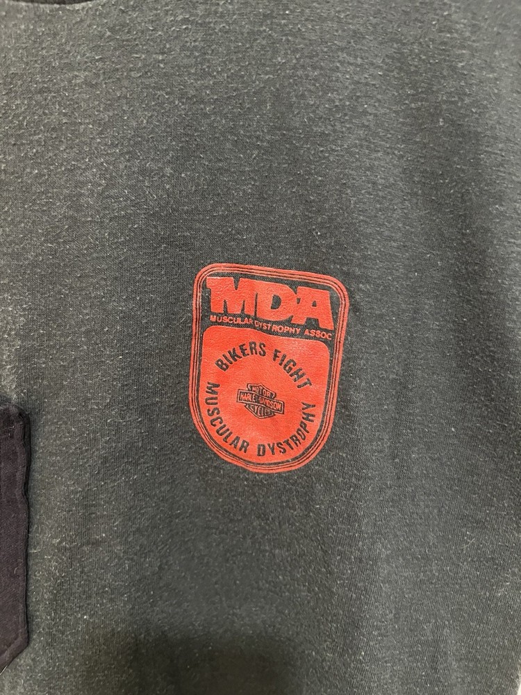 Cool Harley tee from Albuquerque NM for the Muscular dystrophy ride. Someone added a pocket after, so the shirt is grey, but the pocket black. Tagged large, but measures 15.5x27 so probably a slender S/M.