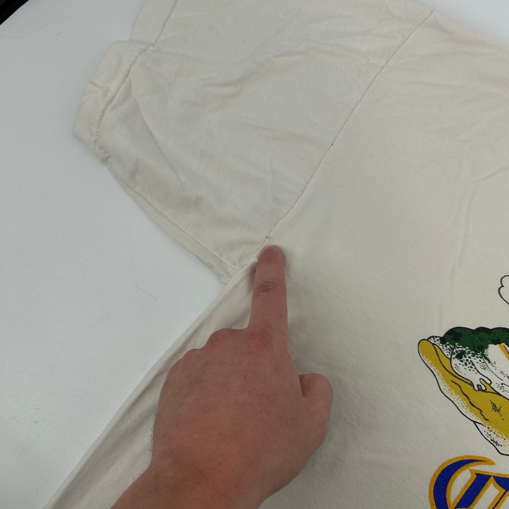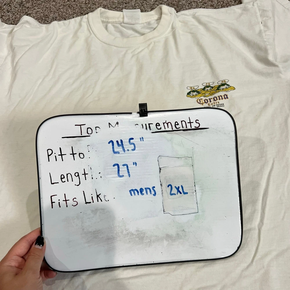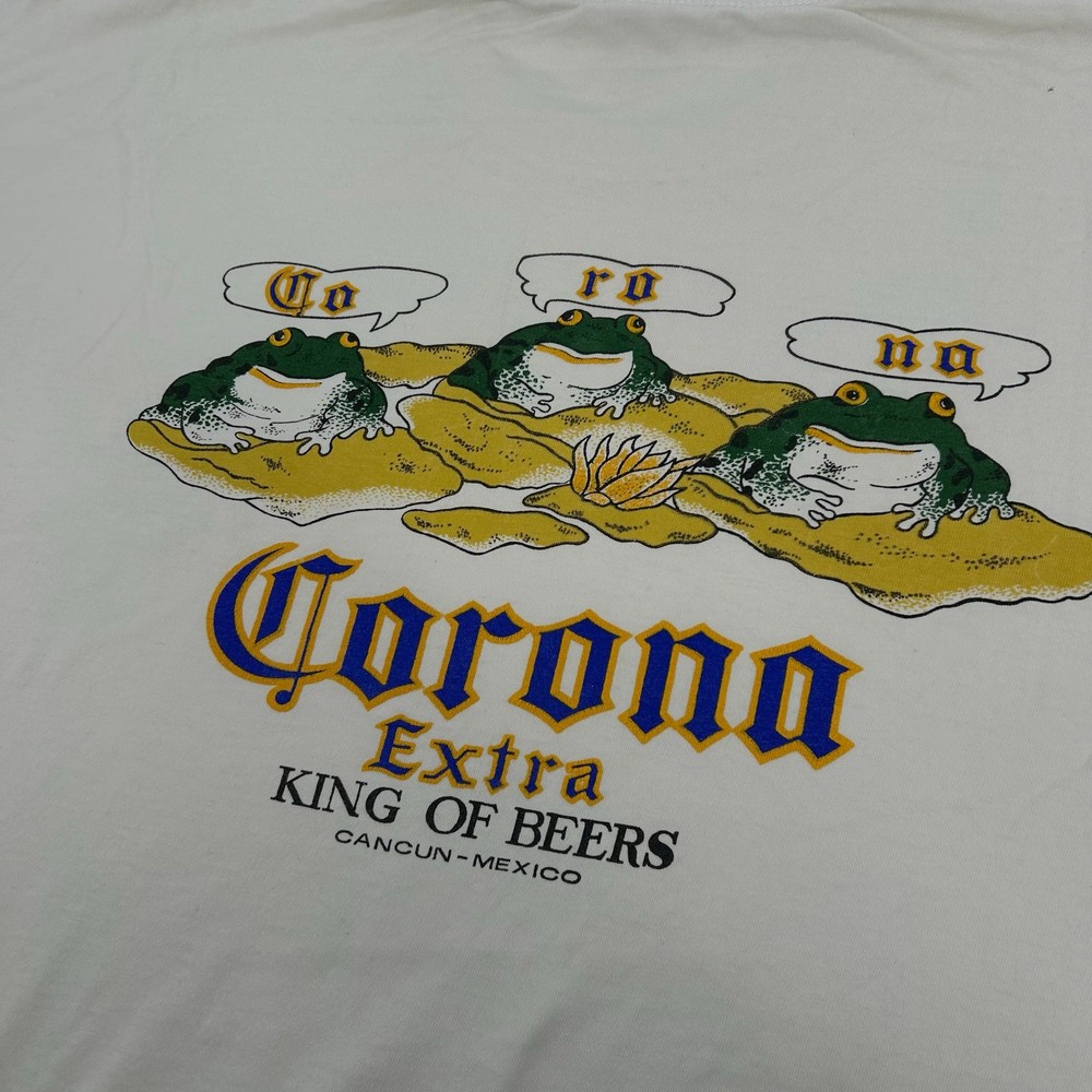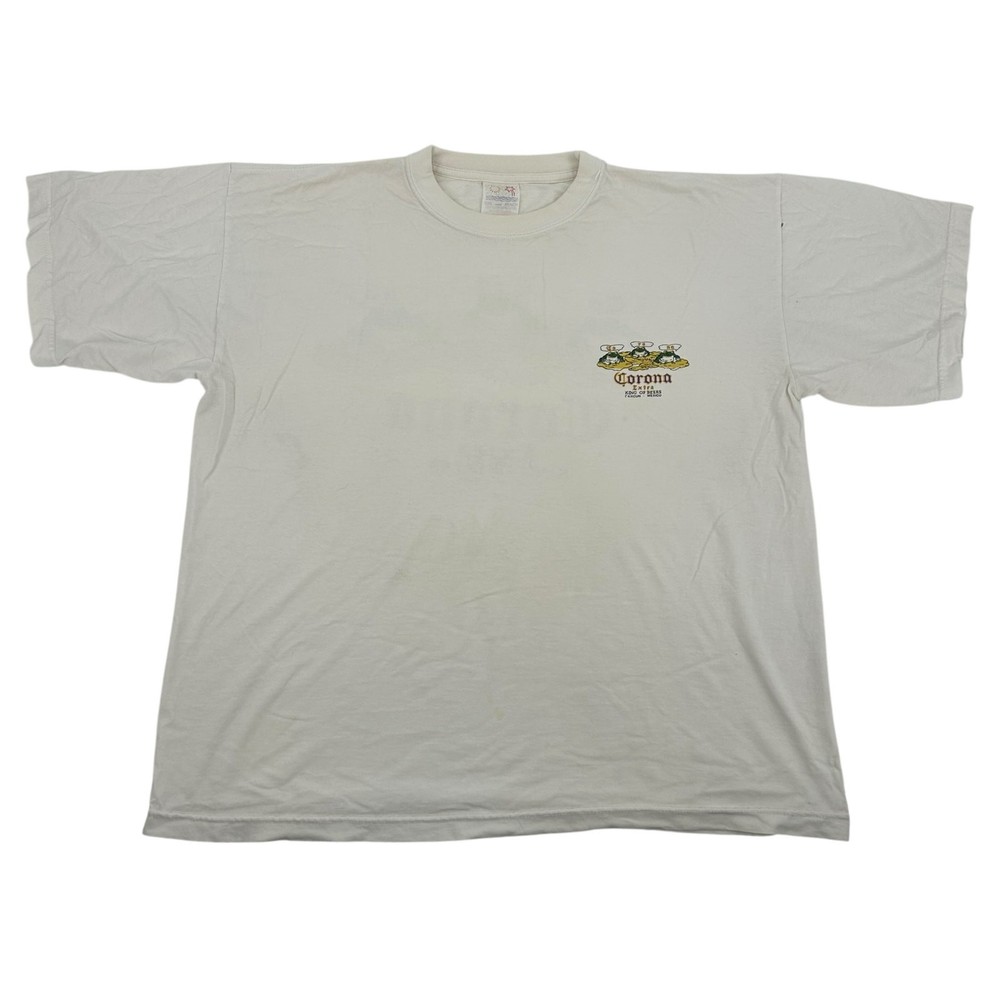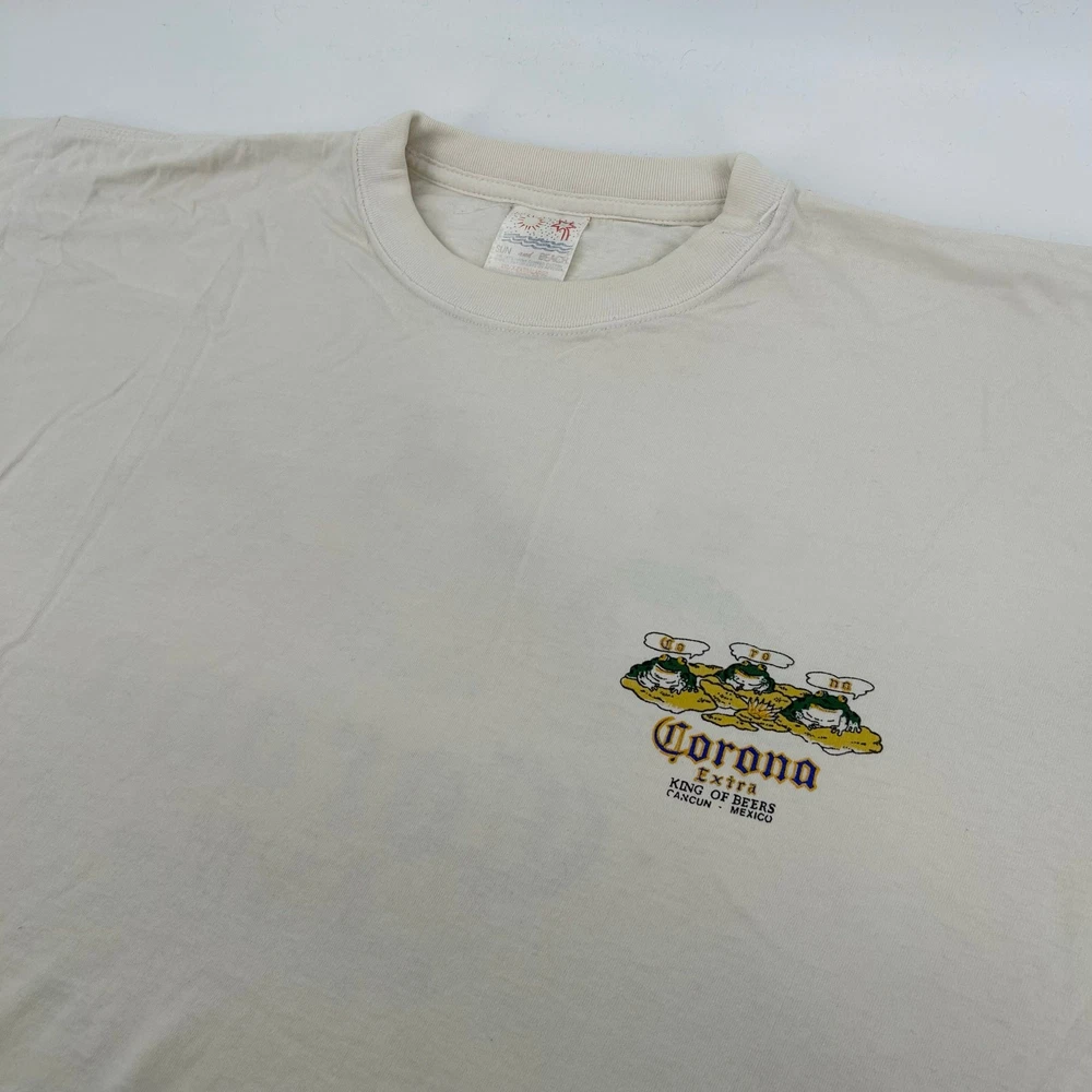 Vintage 80s 90s Men's White Corona 'Extra King of Beers' Cancun Mexico Graphic T Shirt 2XL pit to pit: 24.5" length: 27" Fit's like: Men's 2XL *Some stains and some holes, please see photos* Item is in good used condition. Look at photos to see the condition. All, if any, flaws have been pictured. See the last photo for measurements along with my suggestion of what it fits like. Please know which measurements fit you prior to purchasing, and don’t just rely on my suggestion. Feel free to ask any questions! ***Item is cross posted on several platforms***