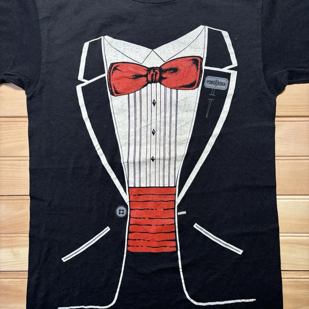 Vintage 80s Ponderosa Tuxedo Suit Red Bowtie Single Stitch Black Shirt Size M