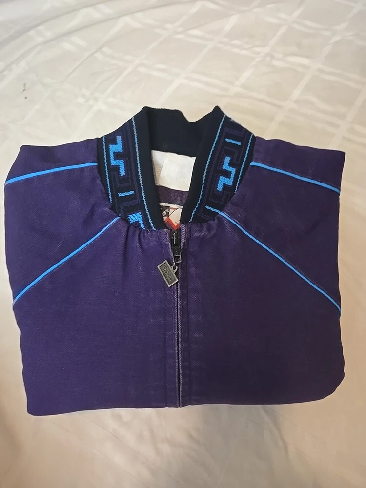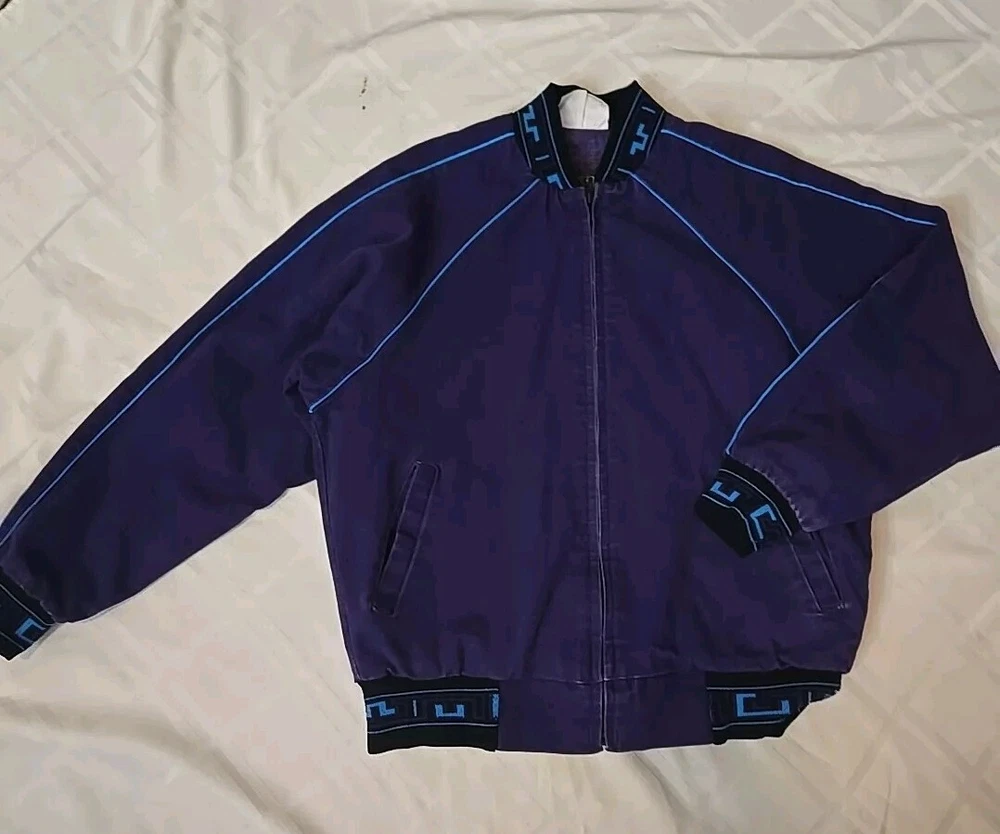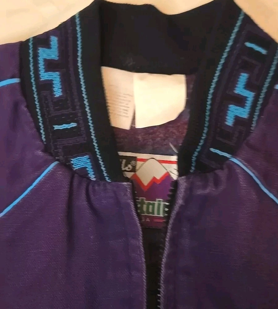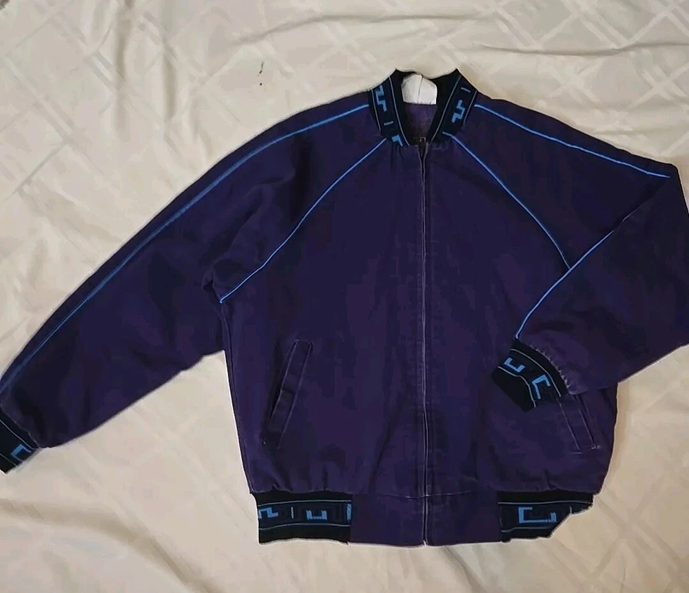 Vintage 80s/90s Walls Aztec Fleece Lined Colorful Purple Denim Jacket Men's Sz M. See pictures for condition.