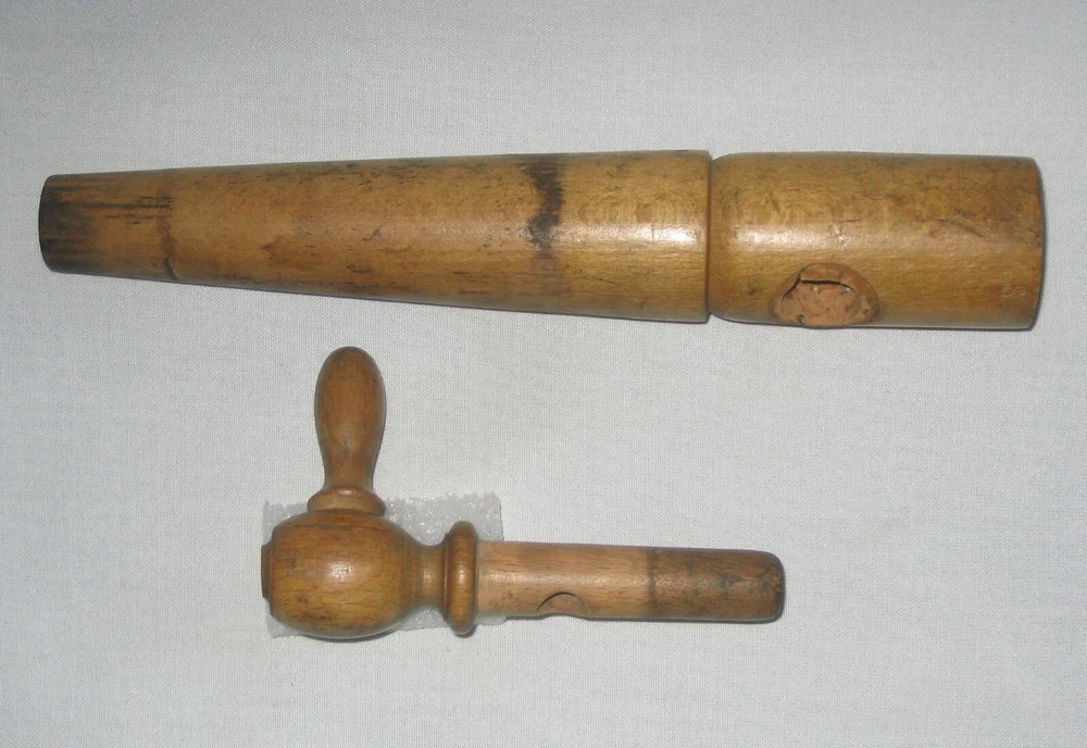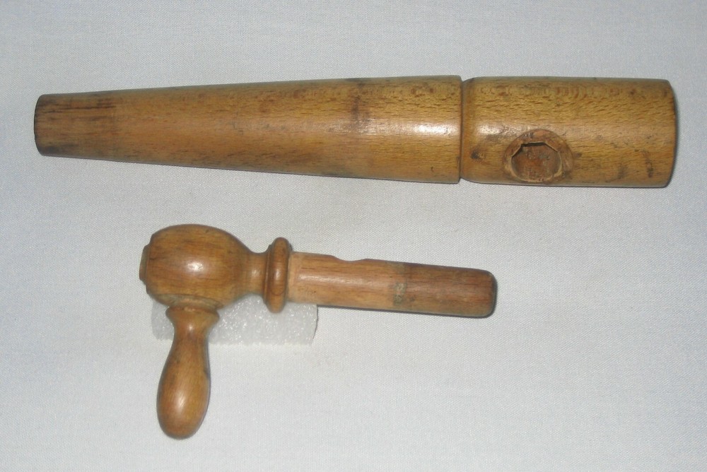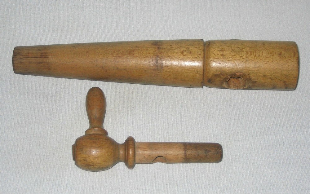 Nice old wooden two piece tap spigot for use with kegs of spirits unknown. Nice patina on tapered body and removable knob. Stamped into the wood at top is 8 1/2 which is the length of the large piece with width at the top of 1 3/8", with the smaller being 4 5/8"and the small handle is 1 5/8". Overall condition is good - showing signs of use as to be expected but without any major damage to the wood. Still a nice study item that could probably be used with a good cleaning. Please refer to pictures and ask any questions prior to bidding. Check out my other listings as I will be happy to combine for shipping any items that end within one hour of each other up to a 15 pound weight limit. Should you purchase multiple items please hold payment until I send a combined, updated invoice. This item will ship wrapped and boxed to protect it from the shipping gorillas across the country. I pack items quite well - as I would want my items packed - to ensure they arrive safely. I will post your feedback asap after I receive yours to complete & close out our transaction. I have been a seller for quite some time and do my best to describe items as accurately as possible to ensure your satisfaction. If for some reason you are inclined to leave negative feedback, please email me so that we may resolve the issue prior to that action.