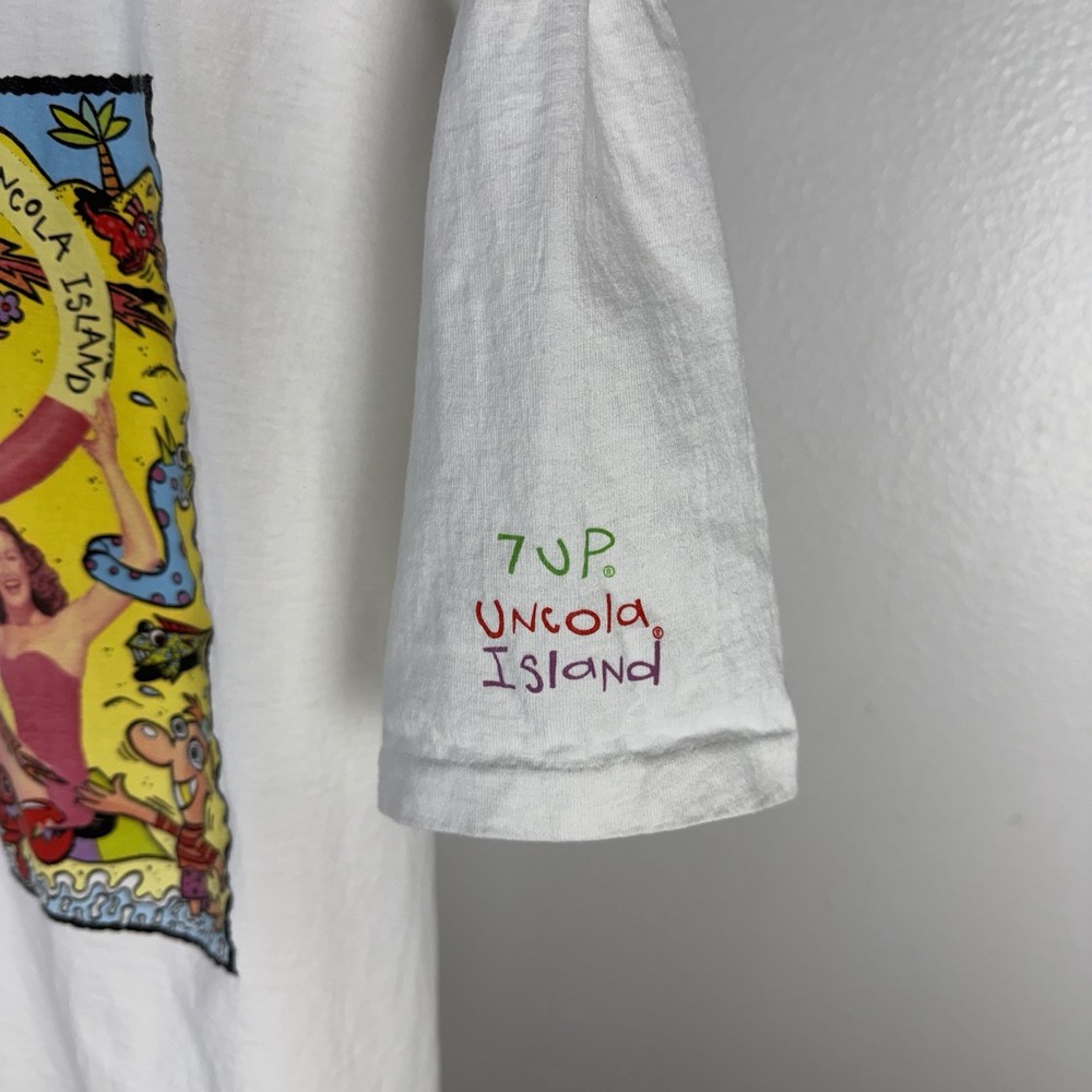 Vintage 90s 7UP White Promo Tee Made In USA 7up Uncola Island T Shirt Size Large. Condition is Pre-owned - Excellent. Shipped with USPS Ground Advantage.