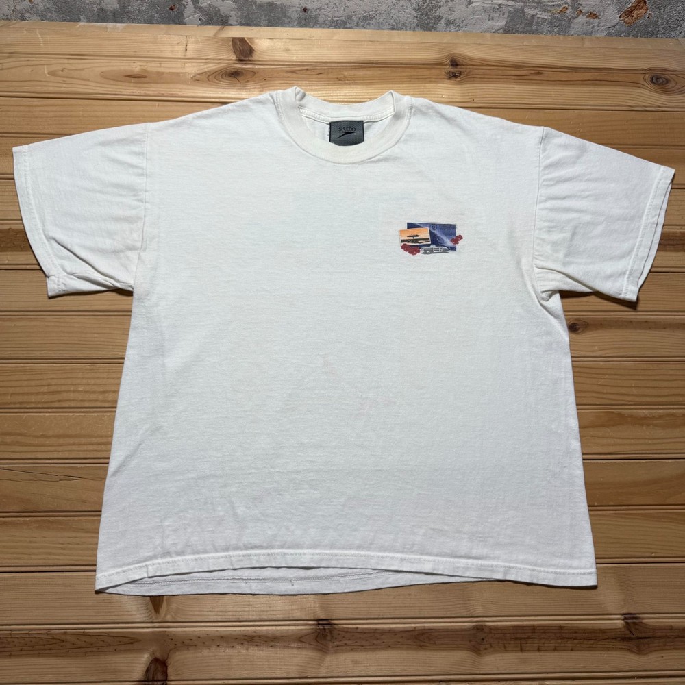 $ 59.4Vintage 1997 Block Island Sunset Sailboat Beach Graphic Souvenir T-Shirt - Large