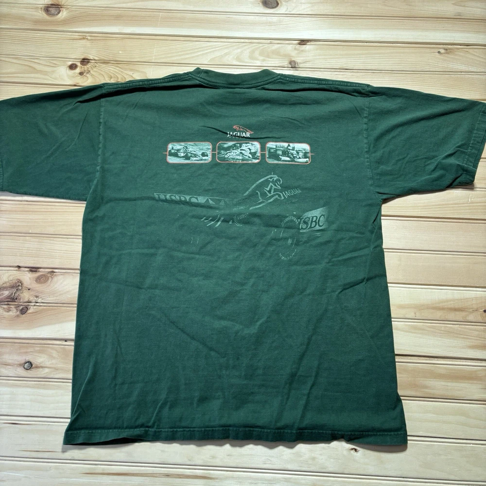 Vintage 90s Jaguar Formula one F1 Racing Double Sided Green Shirt Size XL