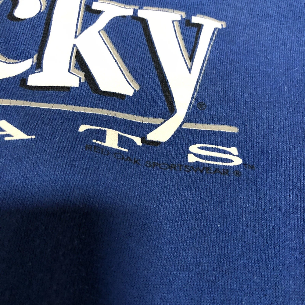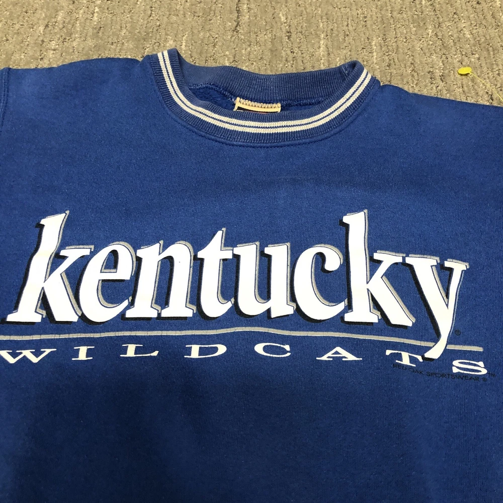 Vintage 90s Kentucky Wildcats Crewneck Sweatshirt Size S Made In USA College Preowned Noticeable fading on sleeve. Has a cool look to it. On a Red Oak tag and made in USA Please see pics and ask questions before purchasing Thanks!