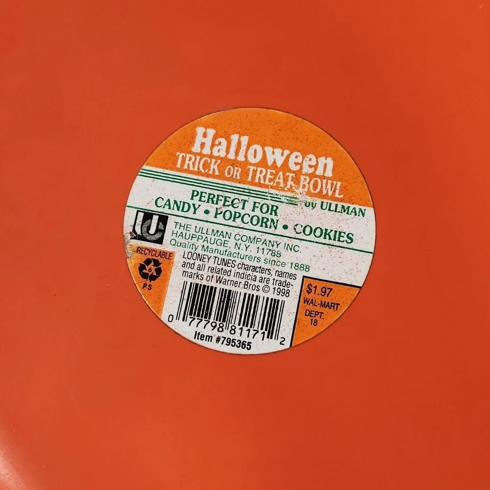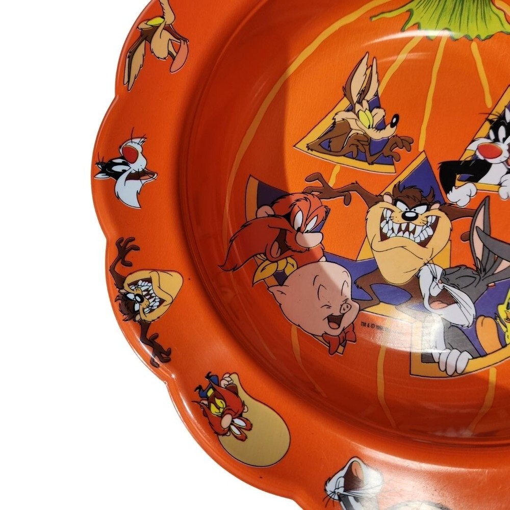 Warner Bros Looney Tunes Halloween Candy Bowl Plastic Vtg 90s Animation Graphic A few minor scuffs and marks, normal for age and use. No cracks or chips around corners. Please thoroughly review photos for quality and condition of item.