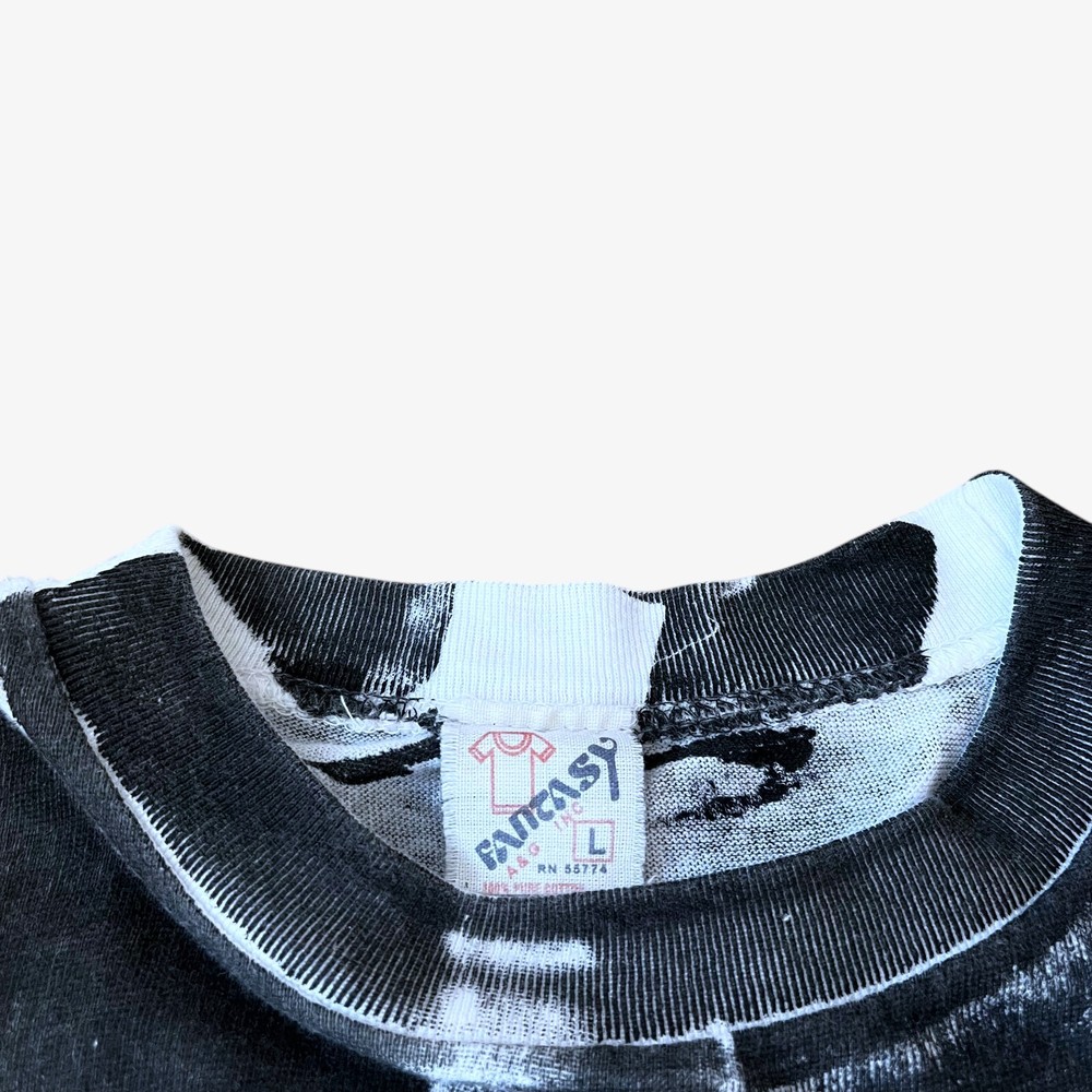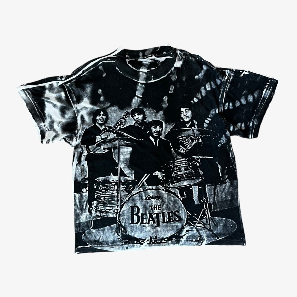 £125 On Casspio's Dream Vintage Vintage 90s Men's The Beatles All Over Print Single Stitch T-Shirt. Double Sided 100% Cotton Retro Rare Size Label: L Our Size: M Measurements: Pit to pit: 22 inches Nape of neck to hem: 25.5 inches Condition: Good. Signs Of Wear Around The Item.