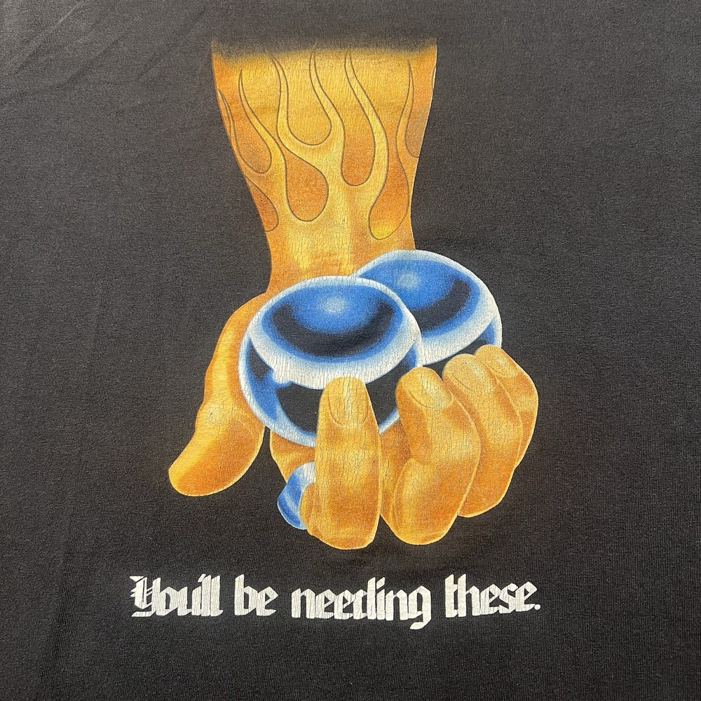 💀🔥 Vintage 90s No Fear “You’ll Be Needing These” T Shirt L Rare Faded Rare vintage 90s No Fear graphic T-shirt featuring the iconic “You’ll Be Needing These” slogan with blue balls graphic, finished with a desirable natural faded look. 📌 Item Details • Brand: No Fear • Era: Vintage 1990s • Size: Men’s Large • Color: Faded Blue • Style: Graphic T-Shirt • Design: “You’ll Be Needing These” / Blue Balls Graphic This is one of the more collectible No Fear slogan tees, with the edgy 90s humor and bold graphic that made the brand legendary in motocross, surf, and skate culture. 🔥 Why This Shirt Stands Out • Rare 90s No Fear slogan tee • Specific “blue balls” graphic variation • Desirable faded vintage wear • Strong extreme sports nostalgia • Great for streetwear and vintage collectors Perfect for No Fear fans, 90s collectors, or edgy vintage tee buyers. 🧵 Condition: Pre-owned vintage condition with natural fading. Please review photos carefully for wear, distressing, or graphic condition. 📦 Shipping: Ships quickly and securely packaged. Great addition for rare vintage graphic tee collections and streetwear rotations.