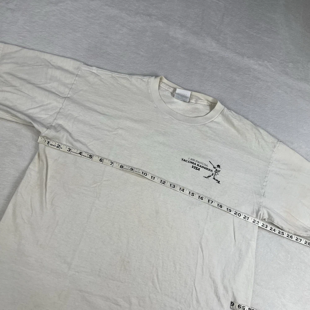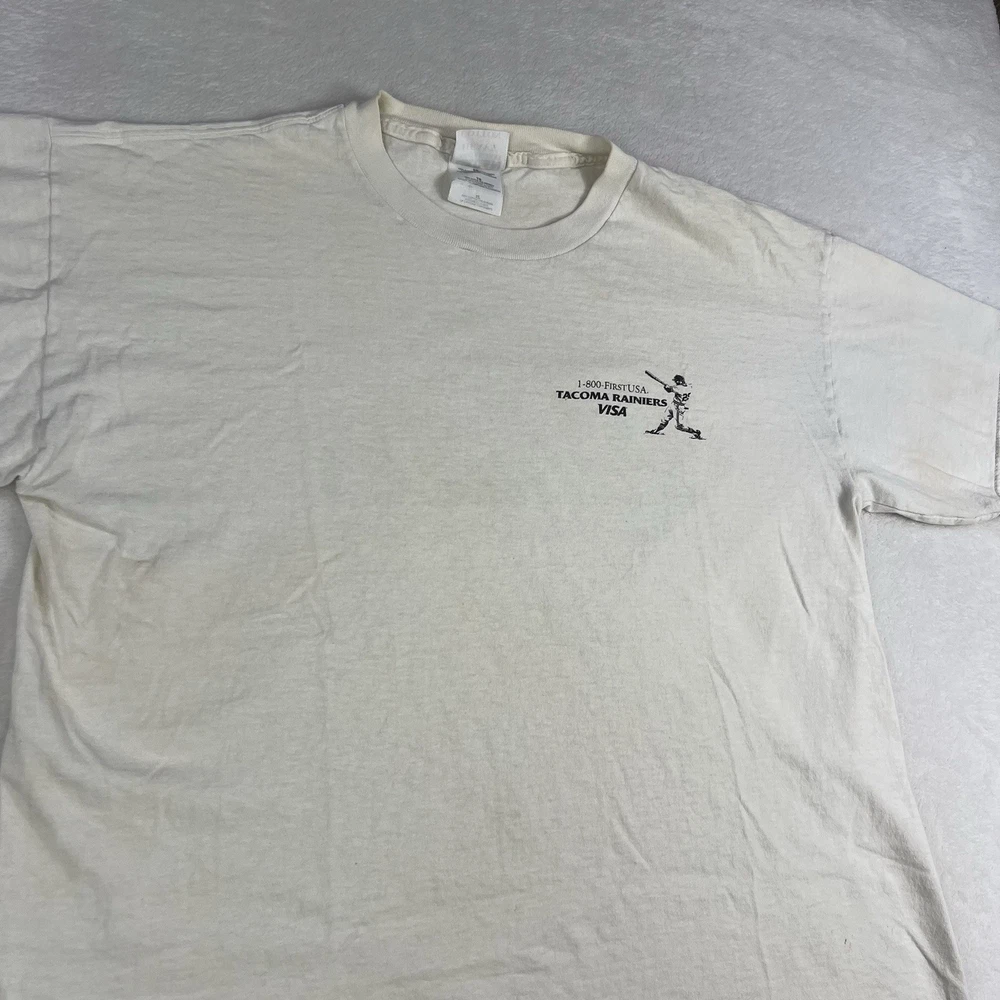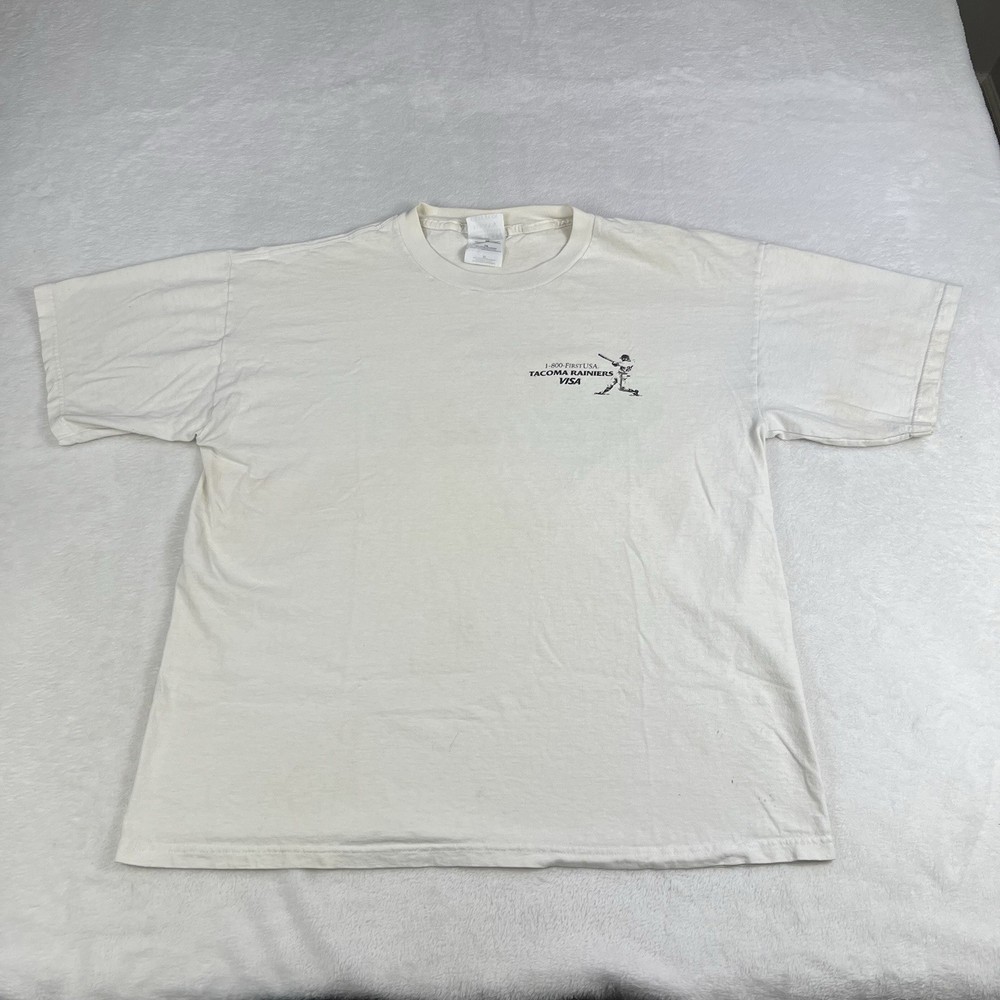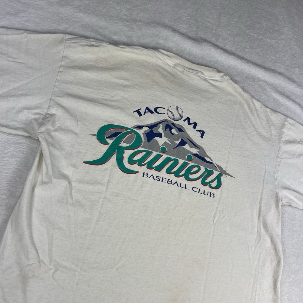 Stains throughout as seen in photos. Vintage 90s Tacoma Rainiers Baseball Club Minor League T-Shirt Mens Size XL