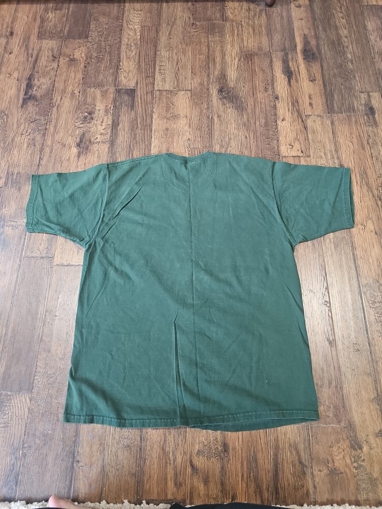 The Vintage 90s The Rock Alcatraz San Francisco T-Shirt in Size XL is a green, graphic print shirt featuring a classic rock theme. Made from cotton with a crew neck and short sleeves, this t-shirt is machine washable and perfect for all seasons, making it a versatile addition to any wardrobe. With its 90s vibe and vintage appeal, this shirt from the 1990s by Fruit of the Loom is a must-have for fans of music and nostalgia. tag is torn as a heads up, ask questions need be, as is sale