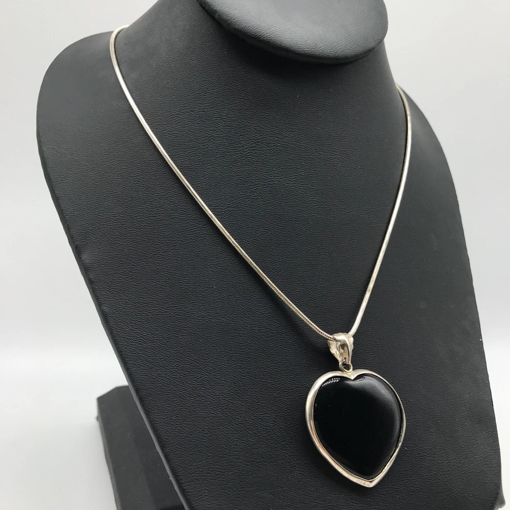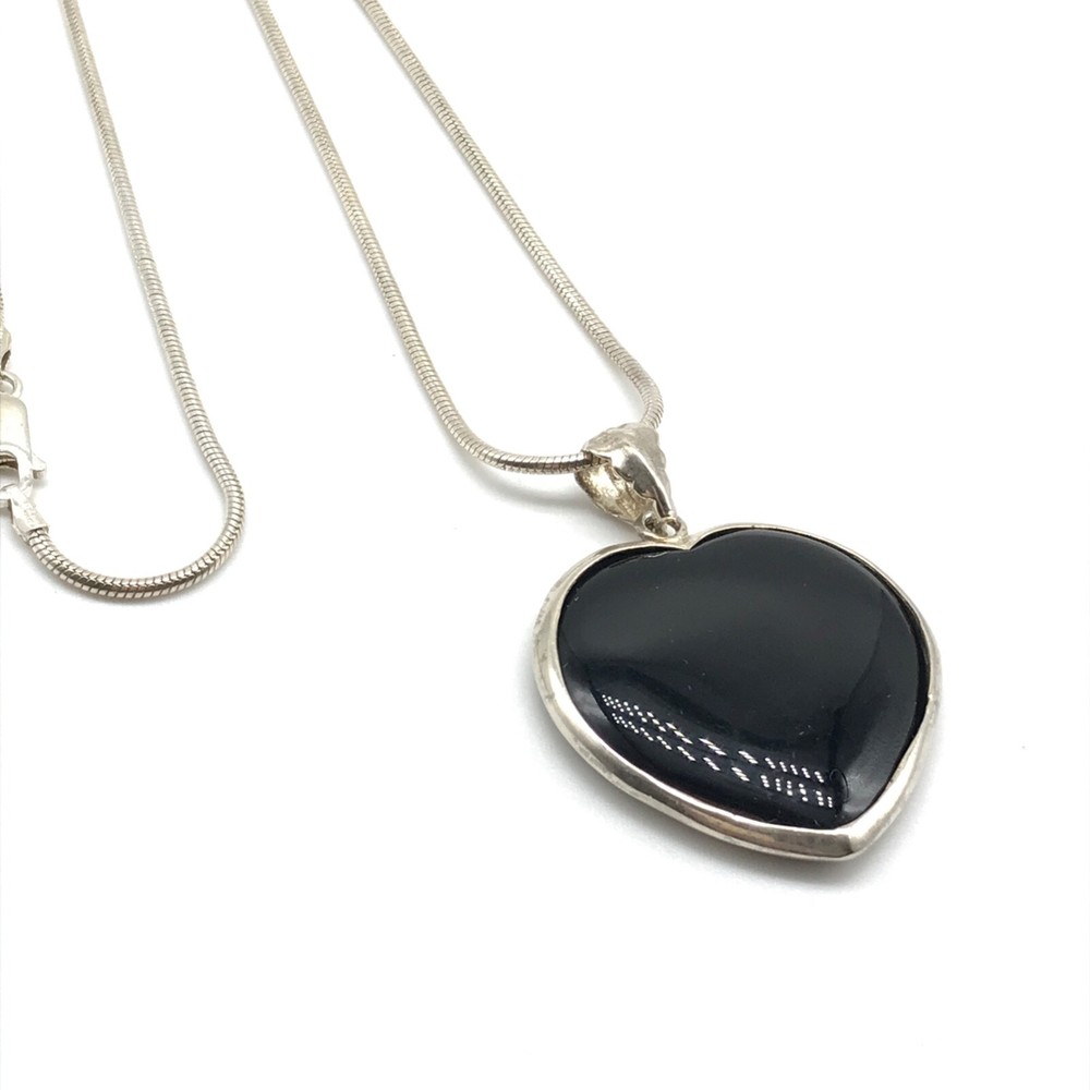 Vintage Solid 925 Sterling Silver Black Onyx Heart Pendant On Chain Necklace 24" I tem details: Chain length: 24" Pendant size: 1.70" long by 1.25" wide Weight: 19.8 grams Marking: 925 - Please note, most of my store's items are vintage or pre-owned. Most items are in very good/good estate condition, but please also view all pictures. Well cared for. All sterling silver is marked 925 or tested. Please feel free to ask any other questions you may have! I also combine shipping. - Jewelry is shipped packaged securely with a gift box or pouch . - I typically will ship same or next business day! - Thank you so much for shopping with me and please check out my other jewelry listings, I post new items daily!