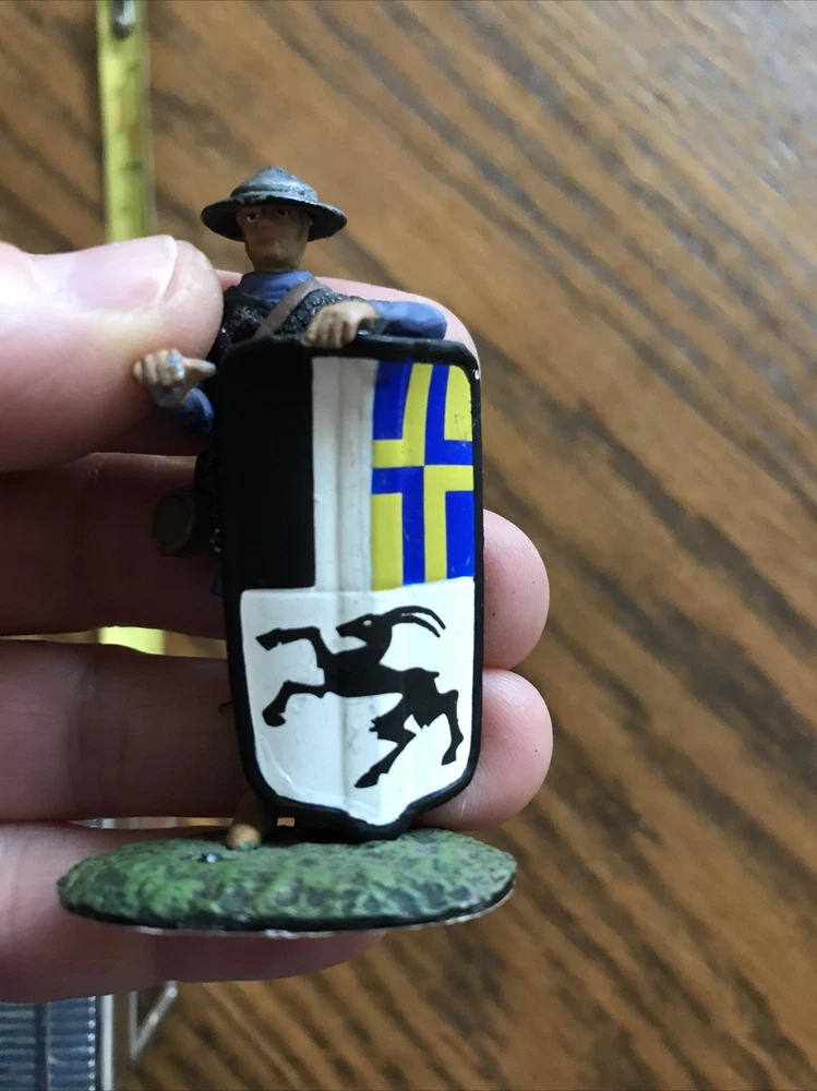 This vintage figurine from Altaya's SOLDATS DU MOYEN-AGE collection depicts a Swiss crossbowman from the 15th century. The carefully crafted details and high-quality lead material make it a great addition to any toy soldier collection. The figurine is in excellent shape, with no signs of wear or damage. Its modified features include a crossbow and unique soldier type. This item is a must-have for collectors and enthusiasts alike. Please, view all pictures for more details and condition.