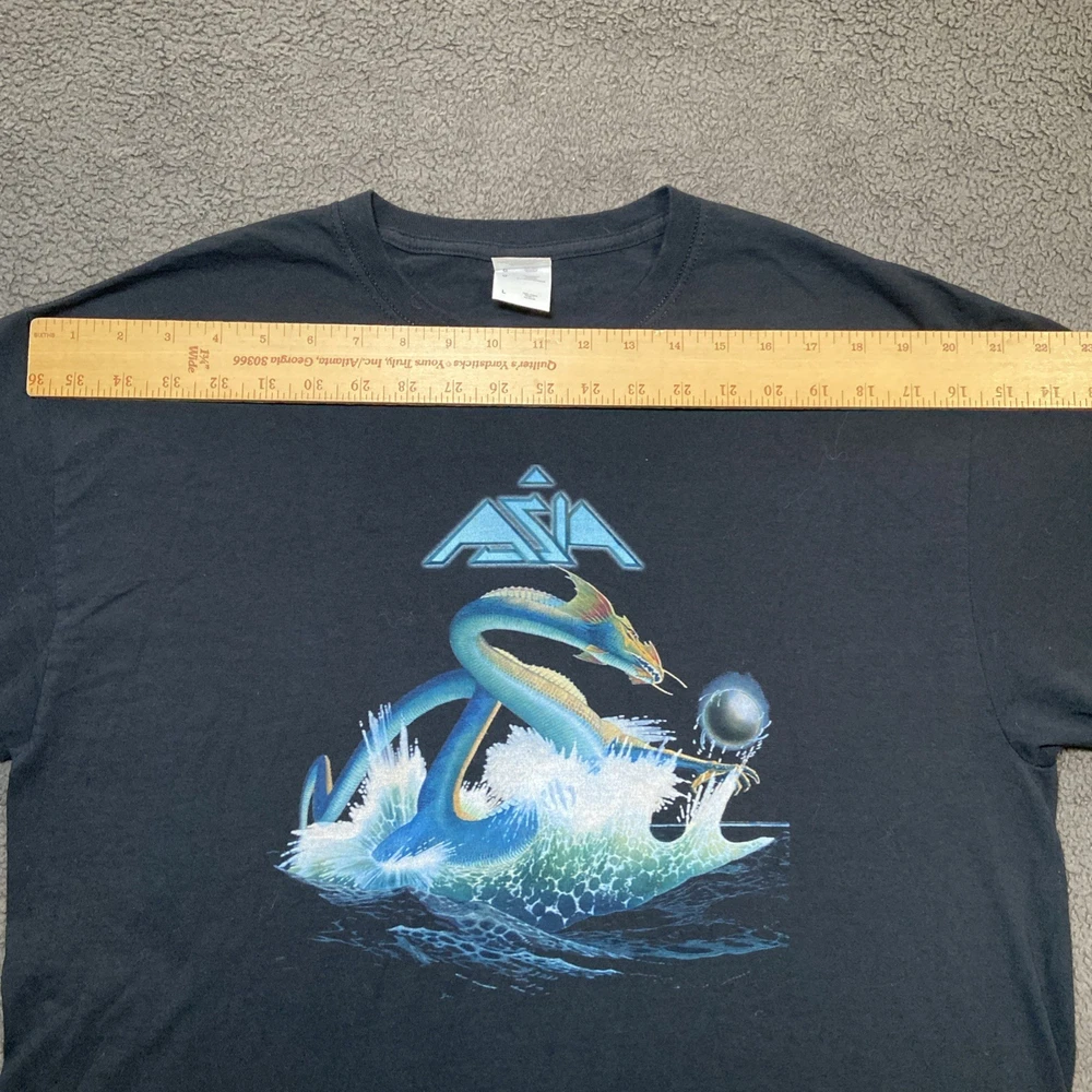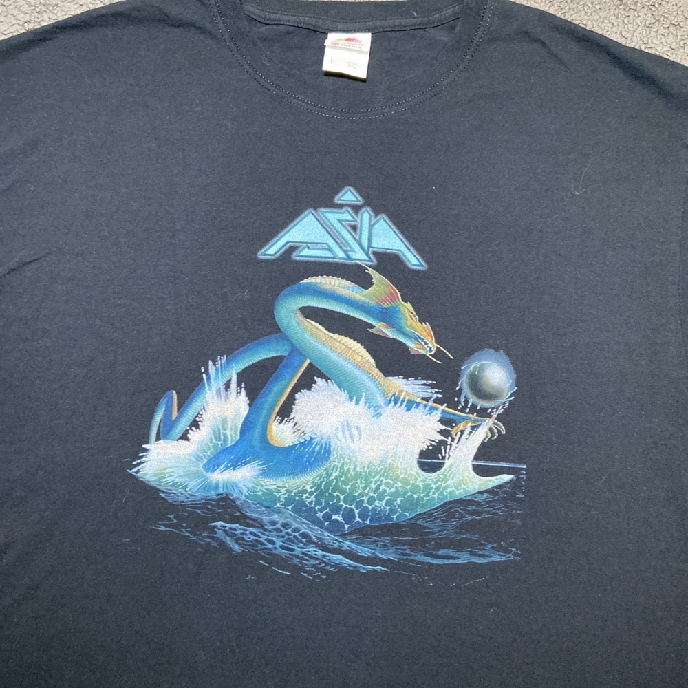 Vintage ASIA Band T Shirt Size L Fruit of the Loom HD Cotton Black Tee VTG Shirt is in excellent condition, no tears small stain on back of shirt as shown in pictures, size also shown in pictures. Feel free to ask any questions about this item, all of our items come from a smoke free environment.