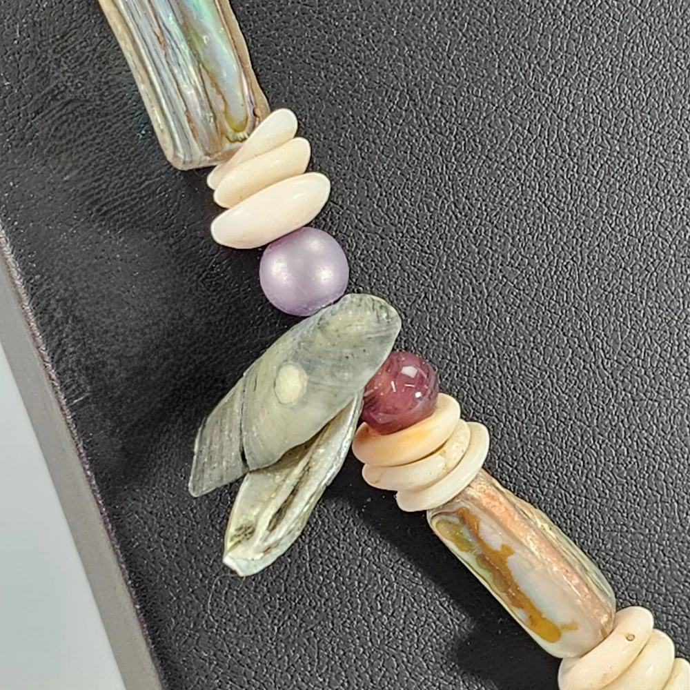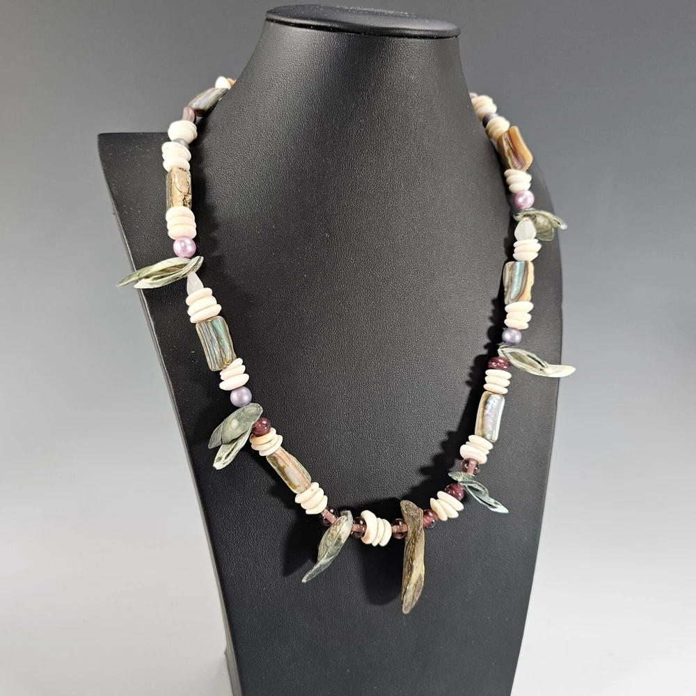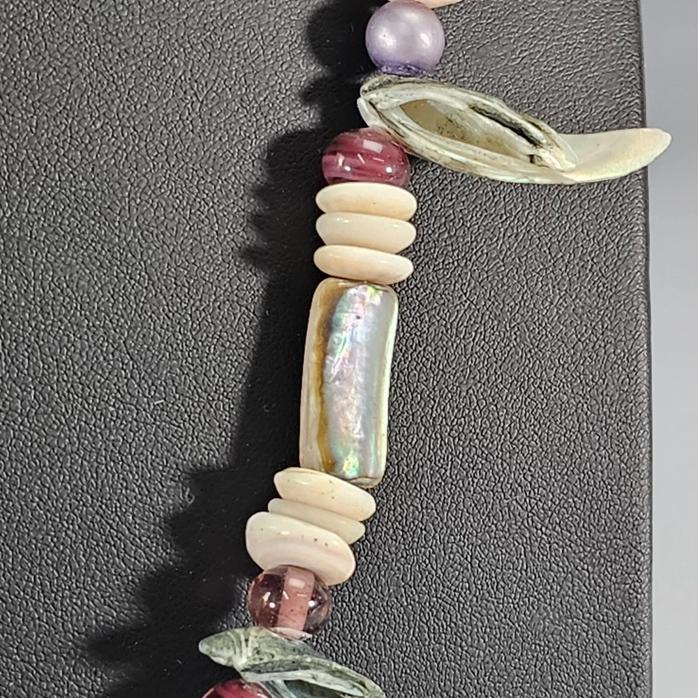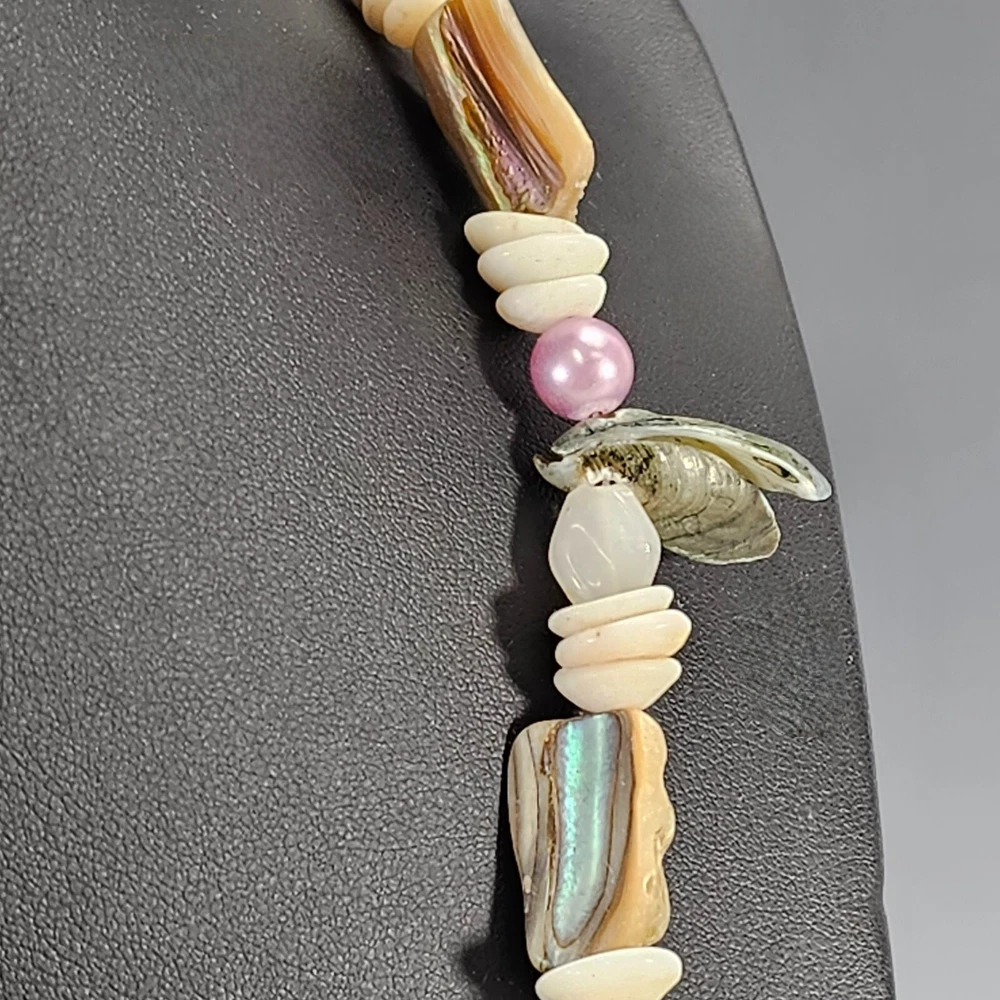 Vintage Abalone Puka Necklace Beaded Hawaiian Beach Necklace 1970's Description: Bring home a bit of coastal beauty with this vintage abalone puka necklace. This lovely necklace was made in Hawaii in the 1970s. Crafted with meticulous attention to detail, this necklace is a stunning combination of iridescent abalone shells and white puka beads. The natural iridescence of the abalone shells compliments textured charm of the puka beads to evoke a sense of beachcombing the Hawaiian seaside. With its vintage appeal, this necklace offers a touch of nostalgia and adds a unique statement to your style. Whether a gift for yourself or one of your besties embrace the beauty of this treasure from nature. Measurements: 22" L Weight: .4 Origin: USA Hawaii Age: 1970s E-E Why Buy From U s?... Fast Shipping. Free 30 day R eturns. ( On most treasures) We combine shipping and will send a par tial refund. And…. Professional Seller We are so dedicated to customer service; you may literally thank “God”, that you chose to buy from us. “I am so blessed and grateful the LORD bestowed this upon us. Thank you also to the seller who did a wonderful job!!!!” Passion for Packaging We get major kudos for our excellent packaging. Precisely because: you’re “breakable” treasure will float on a cloud of custom foam bedding during its journey to your home. So, even if your delivery person throws the box on your porch from his moving vehicle without slowing down, you have almost zero worries, as your treasure will remain safe and sound. “10/10 excellent packaging, treasure arrived fast and safe.” And….. “I was impressed with the careful attention given to the safe and secure packaging to protect the vases!” And… “Well wrapped. Arrived in excellent condition due to being well wrapped.” Awesome Merchandise/Accurately Described The treasures in our store are all personally curated to inflict awe, strike a chord, and melt your heart. After all; it is all about the love. “These are absolutely beautiful. My wife loves them!” And… “Absolutely Stunning! love the work that went into it , Just Beautiful. Fast shipping , Great packing as well. A++++” Very Inclusive Company We welcome cu stomers from all signs in the zodiac. ”I'm a Capricorn, so it was perfect!” One slight term and condition : In the very, and extremely rare occasion, that your treasure arrives damaged; you agree to not open a return right away and to cooperate with the carrier to provide photos and documentation, so an insurance claim can be made. PS last thing, but quite literally most important thing… If for any reason you are not feeling 100% joyful. Don’t hold back; please reach out and let us get you back to 100% again.