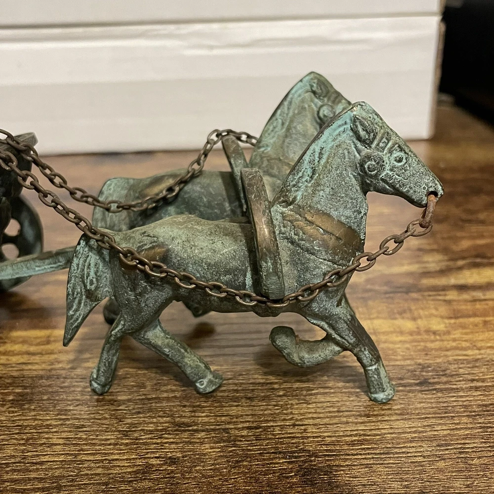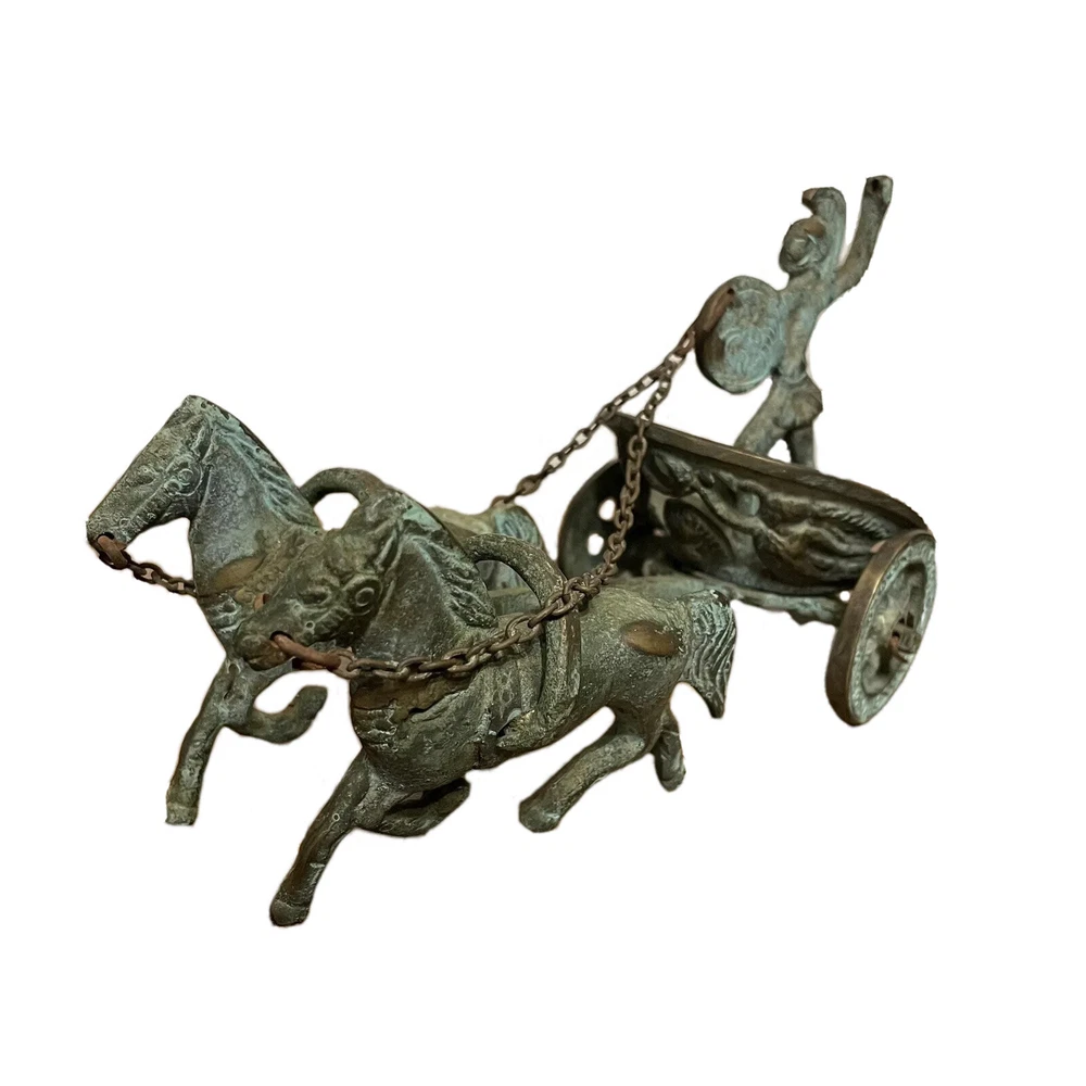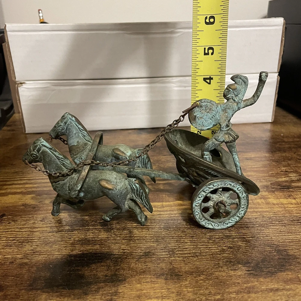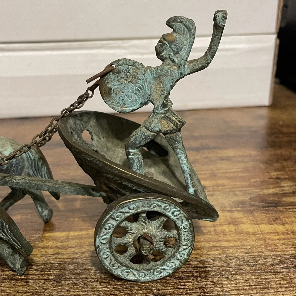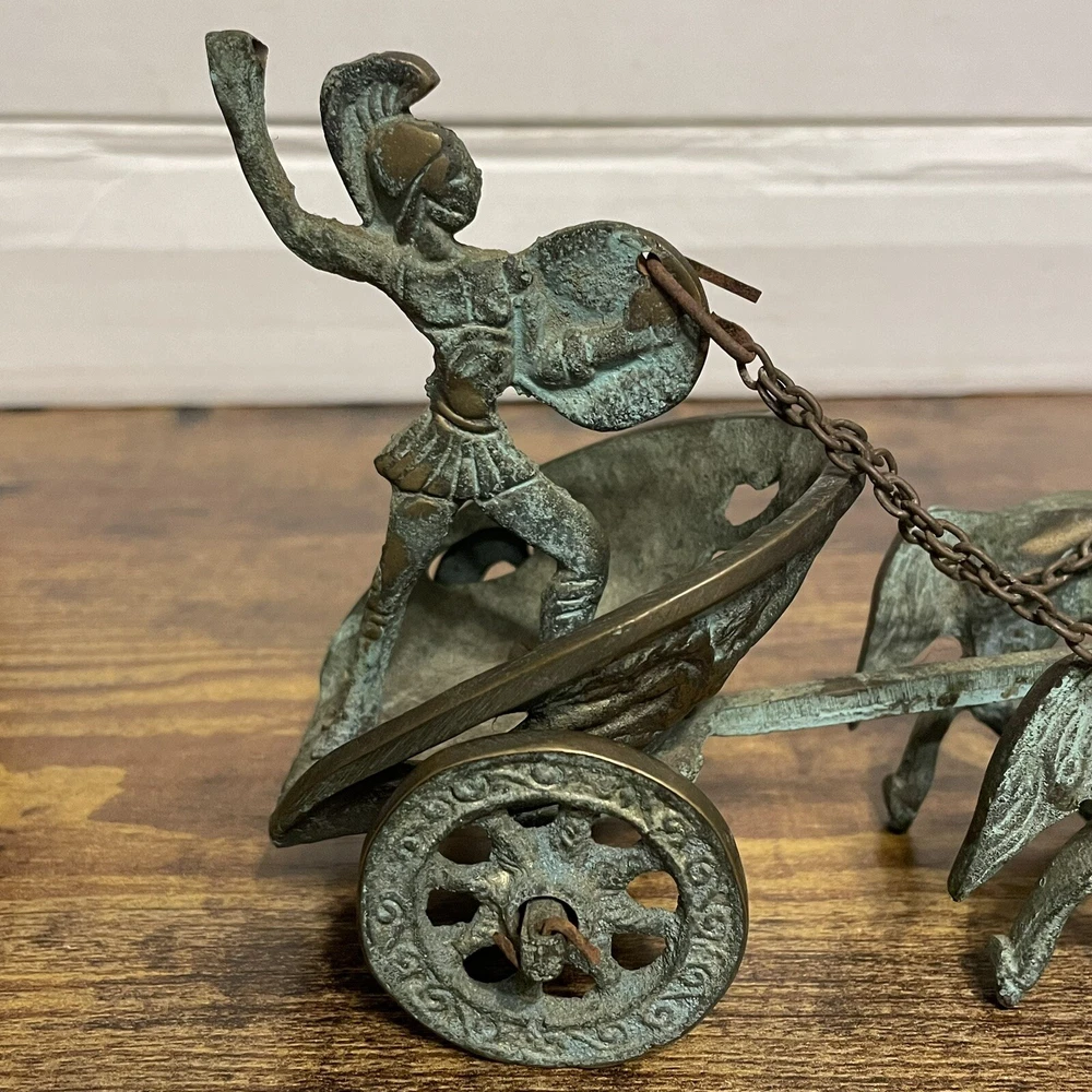 Vintage Achilles Chariot Roman Gladiator Decor Brass Copper Bronze Scultpure. Figure is in good, used condition with some patina as seen in the photos. Metal is unknown and could be copper, brass, or bronze. Gladiator is missing their sword. If you would like to bundle any items please message me and we can discuss pricing and combine shipping(price of shipping depends on weight and size of items, but we can discuss before purchase). If you are a previous buyer please feel free to message me for a discounted rate. I strive for 5 STAR feedback. Customers are my first priority. If for ANY reason you are not totally satisfied, please contact me immediately for assistance. If you have questions about the items listed, whether it is about price, shipping, or other items in my inventory that I do not have listed yet, please feel free to reach out and I will list it if I have it. All mail is sent via USPS unless requested to send via FedEx or UPS. Larger, heavier items will most likely be sent by UPS because their rates have been better overall. Shaggy’s Attic
