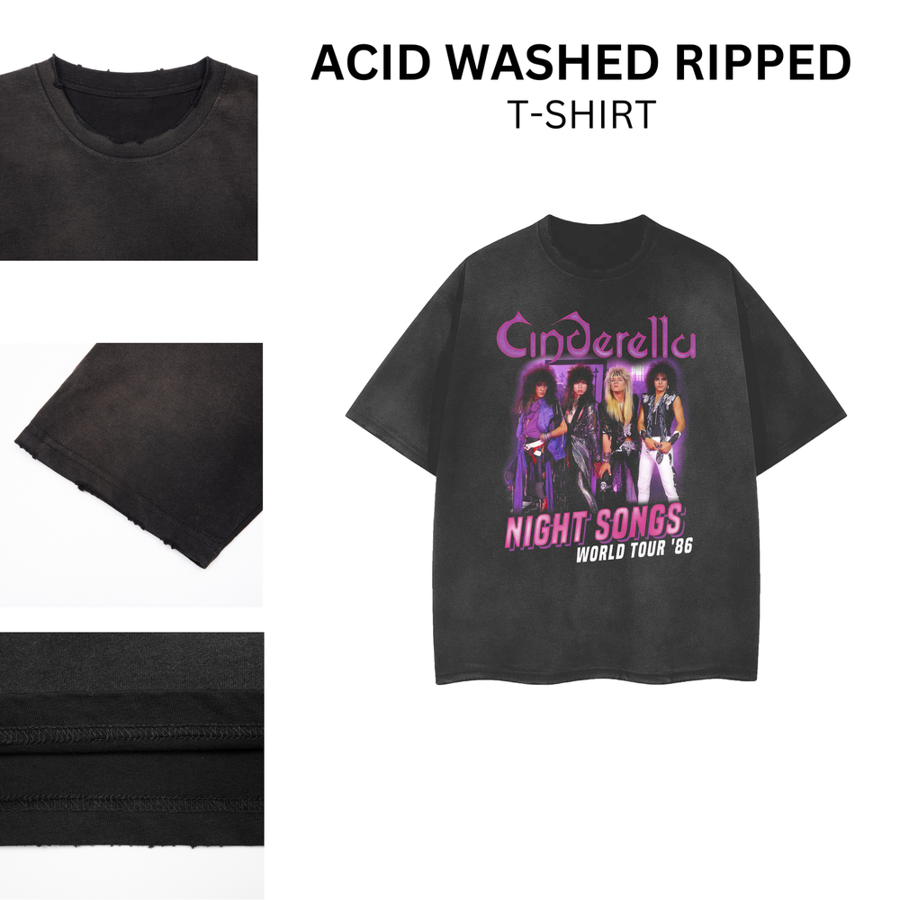 Vintage Acid Wash Ripped Rock Band Tee Unisex Distressed Style 101585