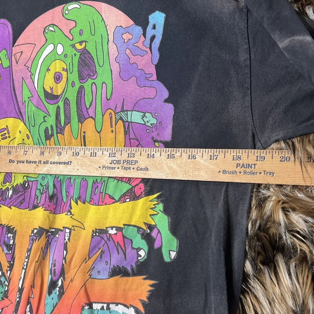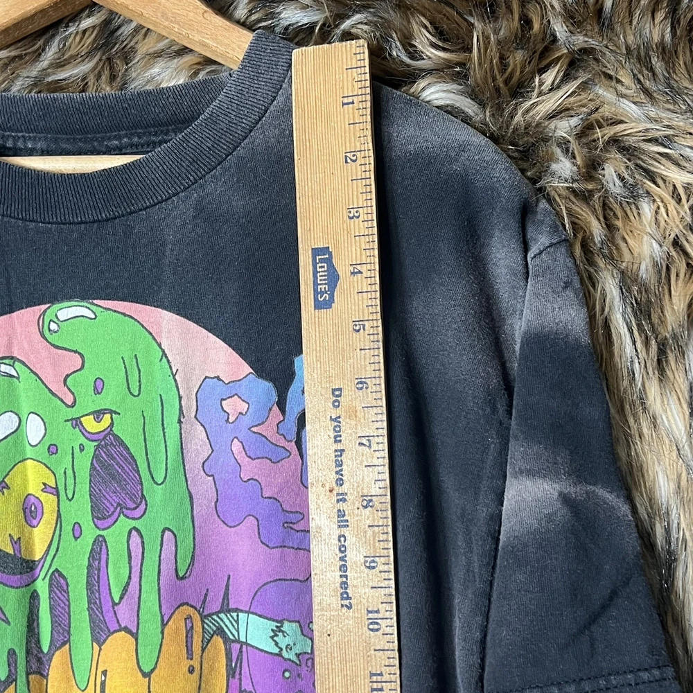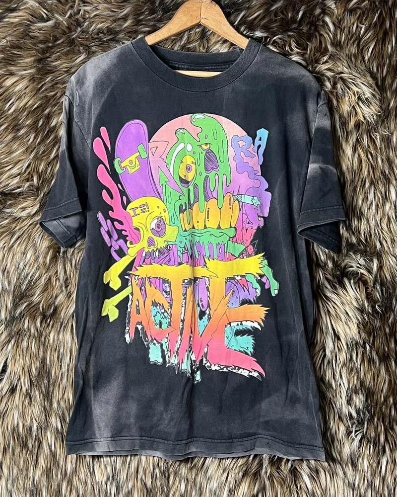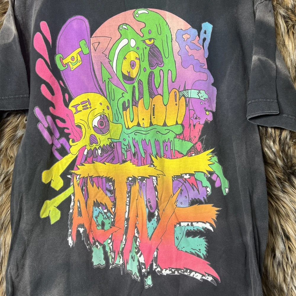 This shirt from Active Skate shop features an abstract graffiti graphic print that is sure to make a statement. Sized as a medium, it is suitable for men who want to add a touch of psychedelic style to their wardrobe. The multicolor design is perfect for skateboarders and skaters who want to showcase their passion for the sport and the culture that surrounds it. The shirt is pre-owned, but its quality is still top-notch.