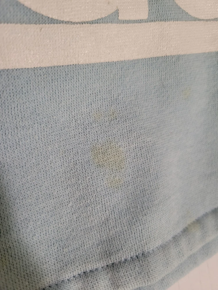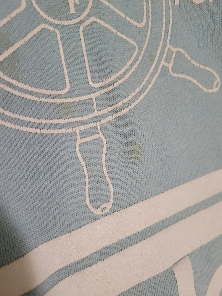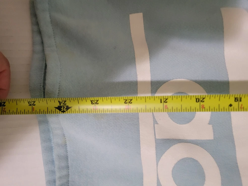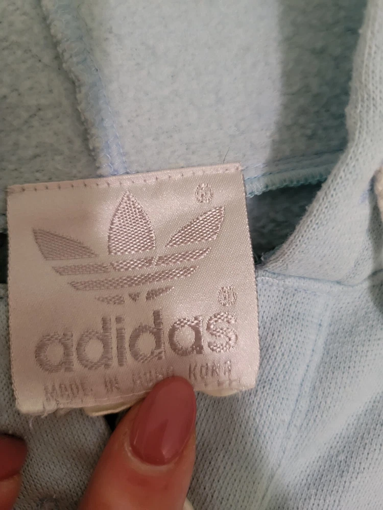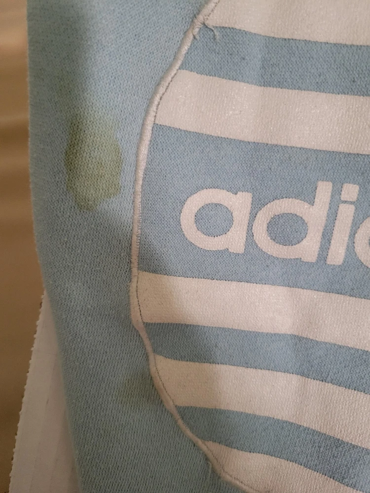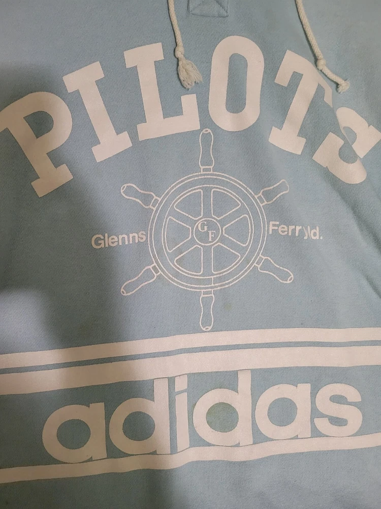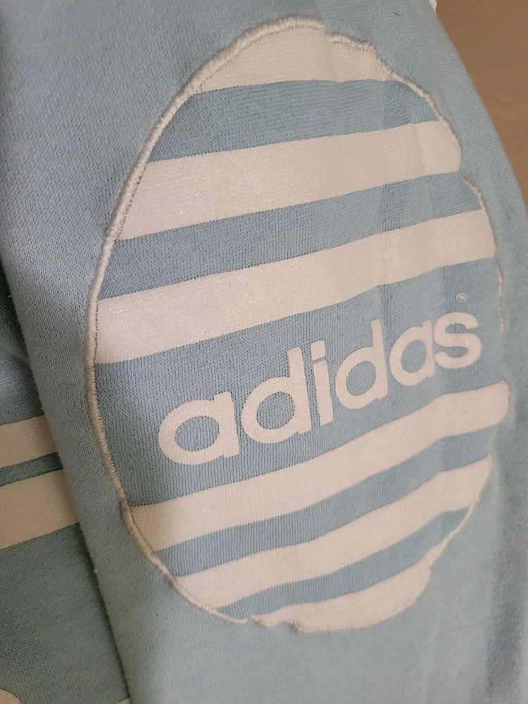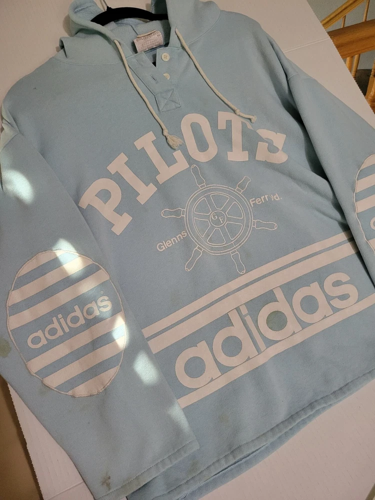 This item is stained (pictured). I have washed item but not stain treated. This vintage Adidas hoodie is a must-have for any style enthusiast. Featuring a unique graphic print and a relaxed fit, this blue pullover is perfect for any occasion. The long sleeve hoodie is made of a comfortable cotton blend material and is machine washable for easy care. The hoodie comes with button closure and features elbow patches with the iconic Adidas logo. The nautical, grunge, and preppy theme of the hoodie make it a versatile addition to any wardrobe. This hoodie is perfect for men who want to add a touch of classic and retro style to their outfit. Measurements are pictured as the size is hard to see.