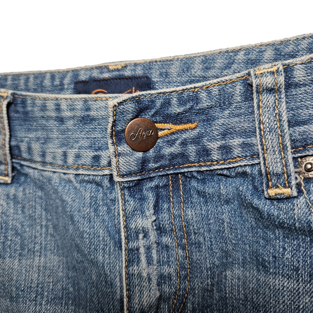 Brand: Aeropostale Size 3/4 Denim Mini Skirt Blue Medium Wash Low Rise Distressed Raw/Washed Cut Hem 100% Cotton Denim Vintage Zipper Closure 5 Pockets *All Measurements approximate and taken with the garment laid flat. Fast Shipping Smoke/Pet Free Home All Reasonable Offers Welcome!