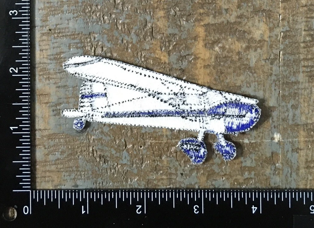 Vintage Airplane Aircraft Aviation Plane Embroidered Iron-On Patch White/Blue