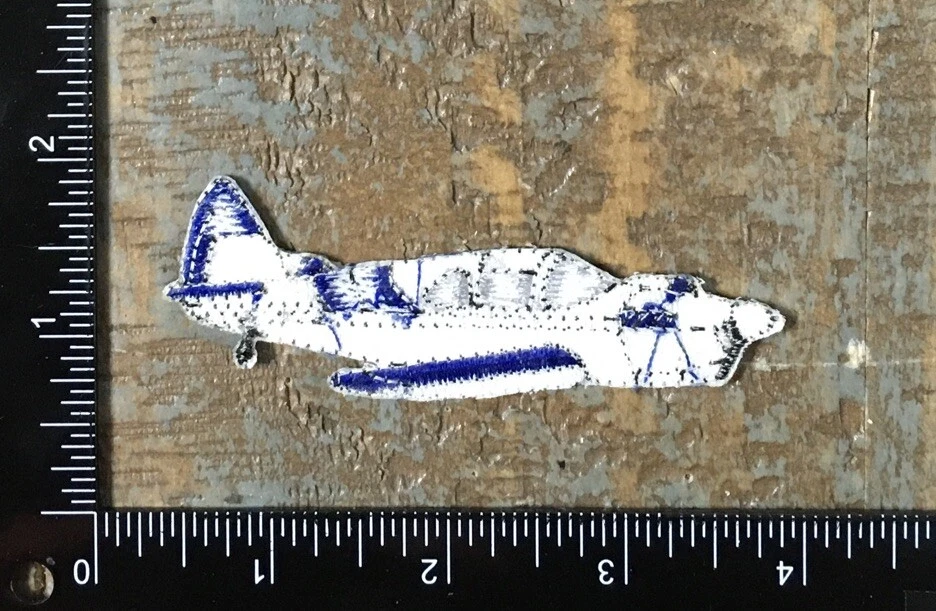 Vintage Airplane Aircraft Aviation Plane Embroidered Iron-On Patch White/Blue