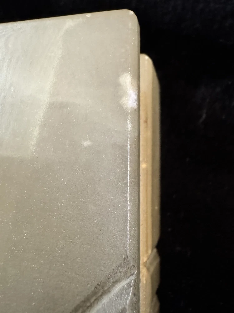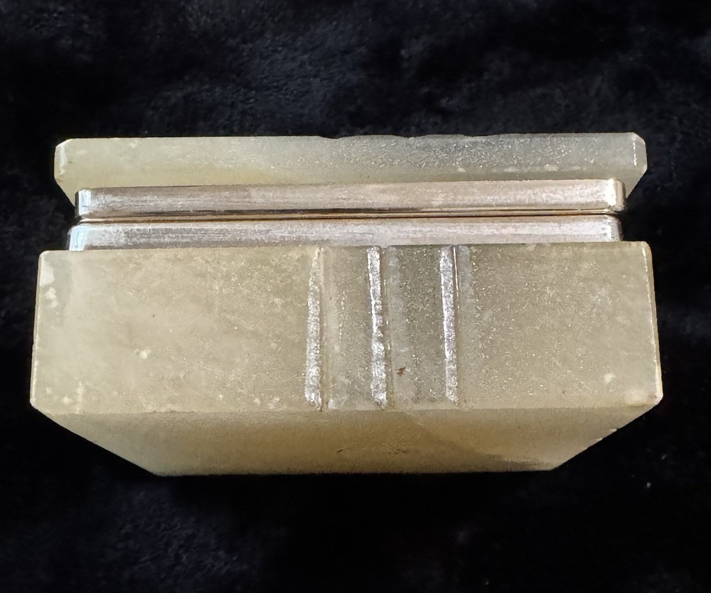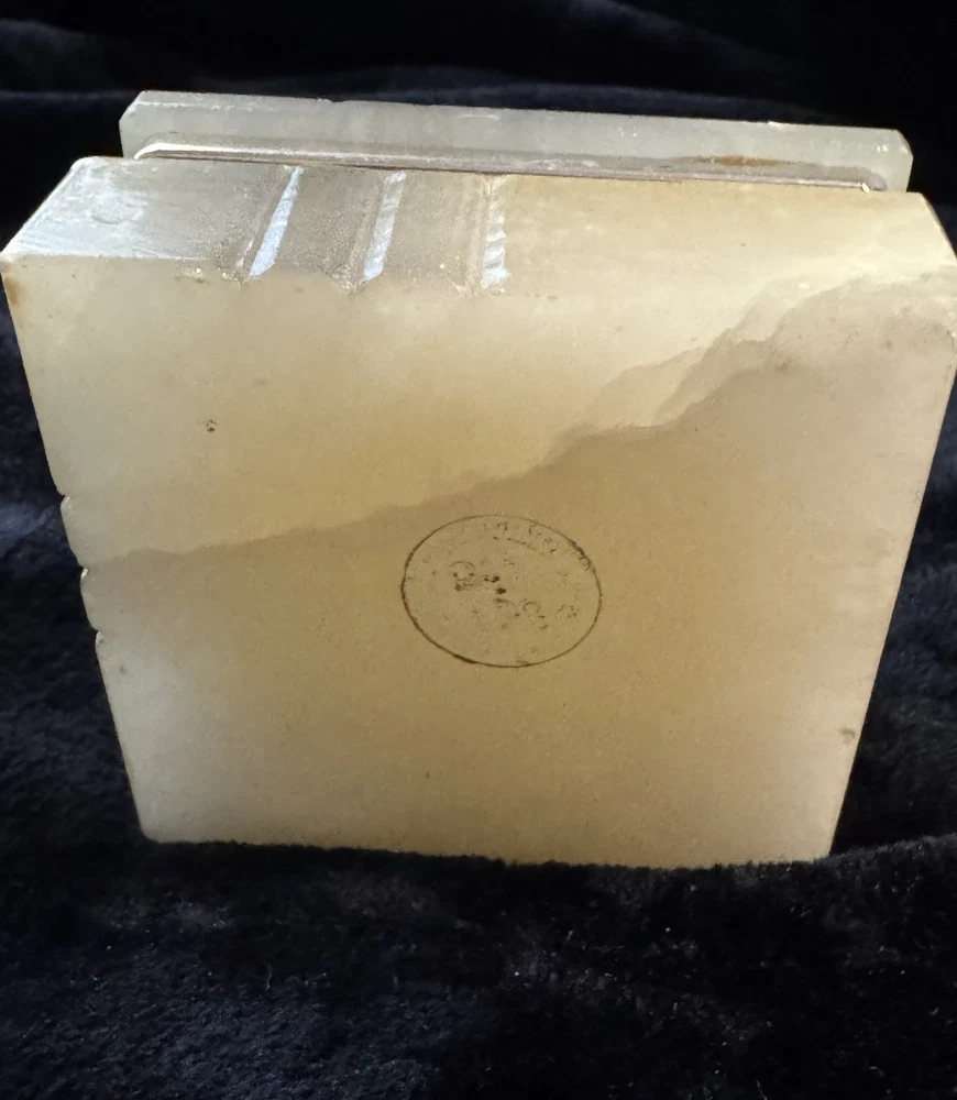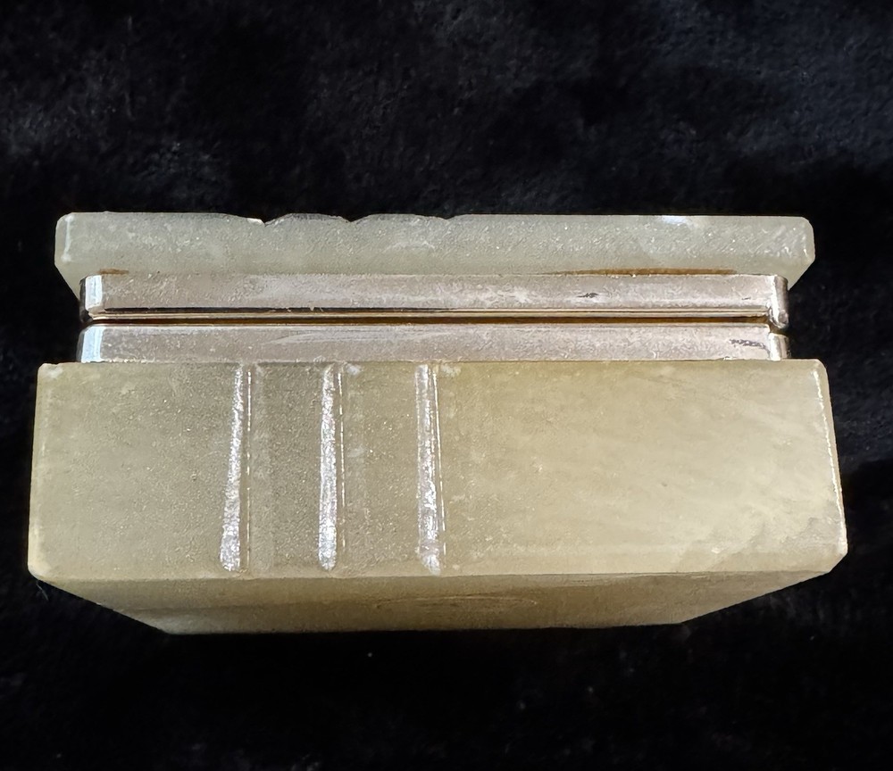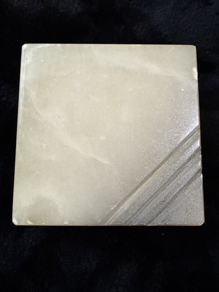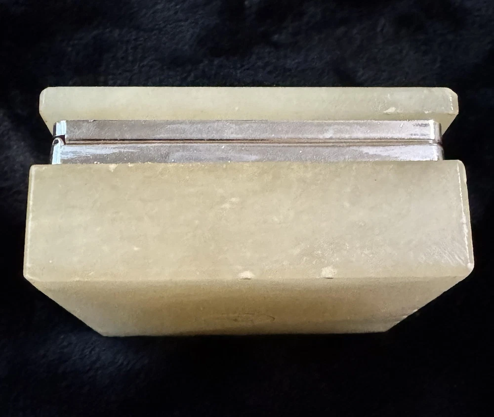 This vintage alabaster hand carved hinged lid jewelry trinket box is a small, rectangular box made in Italy. The box features a beige and gray color with a glossy finish, exuding an Italian style. It falls under the theme of art, retro, and romantic, making it a unique and elegant addition to any collection of decorative collectibles. The box is unboxed and should be cleaned with a damp cloth. Perfect for storing small jewelry items or keepsakes, this trinket box is both functional and visually appealing.