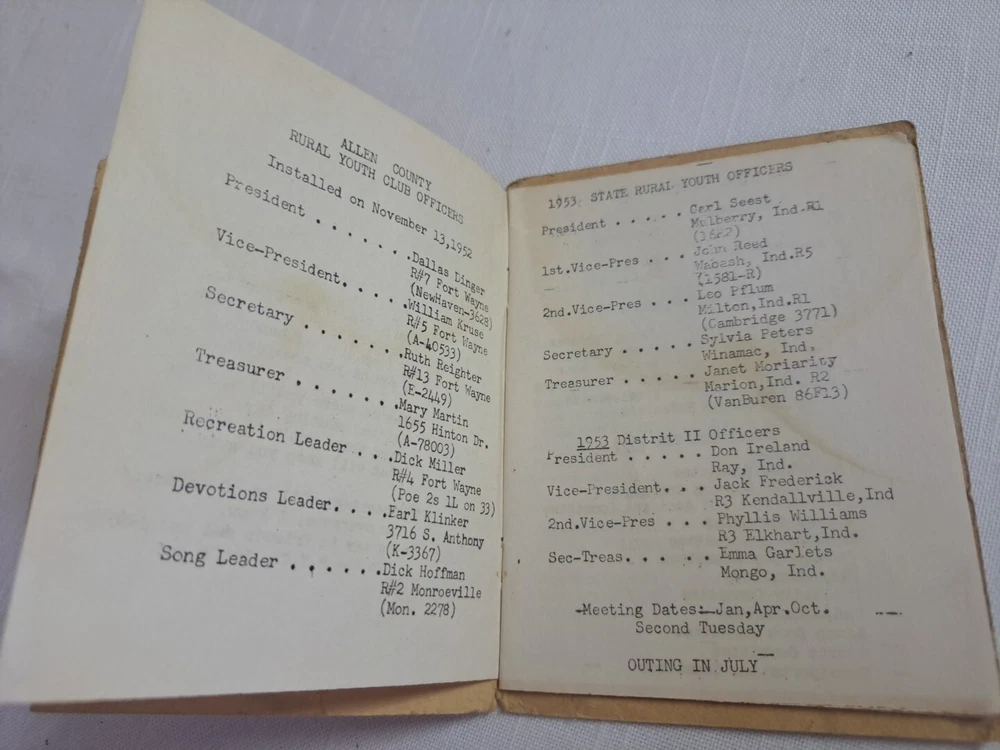 Vintage Allen County Rural Youth Club Program 1953 Booklet Allen County Indiana. Condition is Used. Shipped with USPS Media Mail.