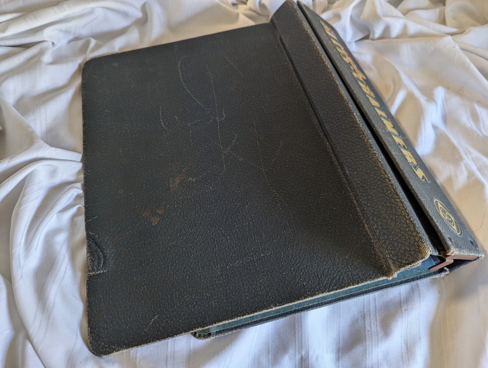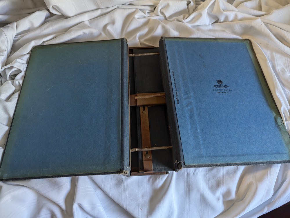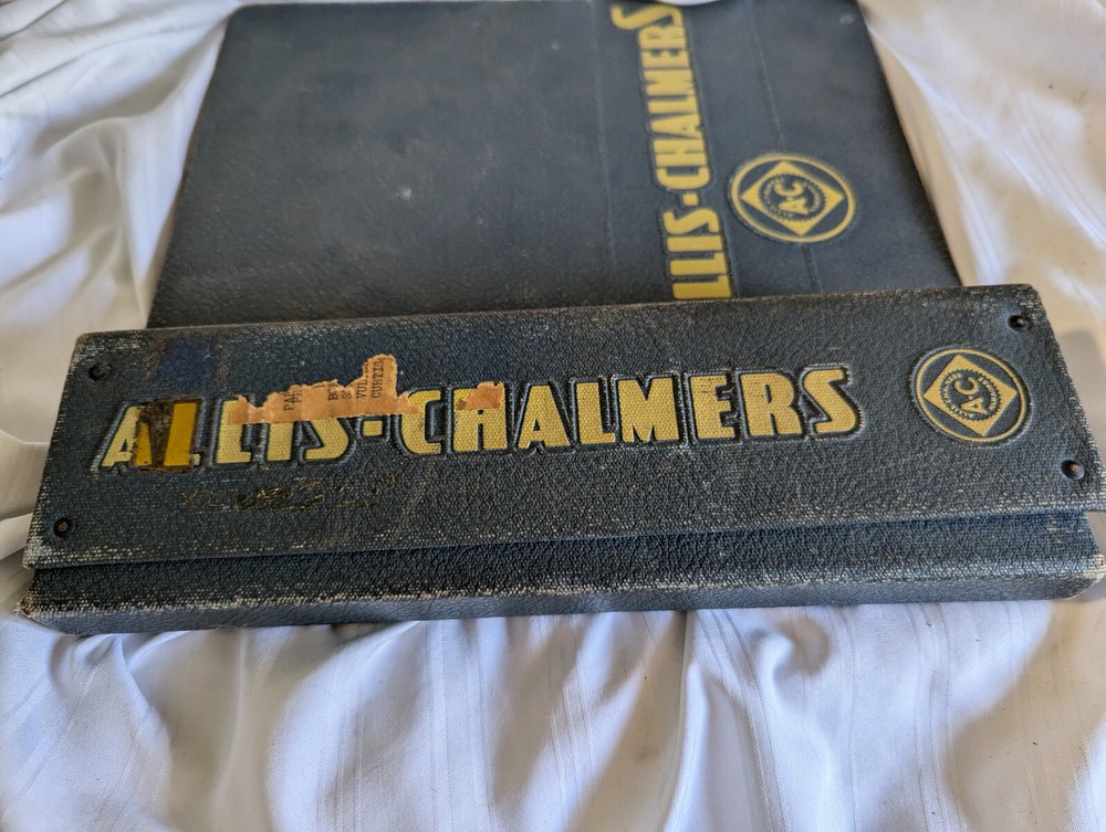 Great vintage blue binder from Allis-Chalmers - tractor parts company. It has a patent number that dates it at 1942. This is for the binder only. It measures approx. 9.75" x 11.75" x 3.75". Empty, it weighs over 2.5 pounds, without packing materials. Please see the photos. Looking for art glass, china, sterling silver, aviation collectibles? Check our store, we have more! Please ask questions! We combine shipping costs! Priority Mail and Ground Advantage now includes up to $100 of insurance. Check out my store! You will find clothing, accessories, antiques and aviation collectibles – even some stuff for the kids! Item comes from a smoke free, pet free home. Email me if you have any questions! Thanks for looking! A note about feedback: If you are planning to award less than five stars for any of the categories, please email me and let me know if there is an issue. I do my best to start items at the lowest possible price and provide great service. The rating system is how eBay charges the sellers our fees – so it is very important to us! Also, regarding shipping fees, I only charge you what the USPS charges me – no handling fees. If you would prefer a different shipping option, just let me know! I just want to be fair and have you happy with your purchase! The tracking number for your package inside the USA will be emailed to you. International purchases are handled by eBay. I do not end auction items early – ever!! It is not fair to everyone else, so please do not ask! Returns: Please measure your favorite fitting pieces of clothing in your closet and compare the measurements to the listing. If an item does not fit, it is not eligible for return. I do not refund shipping costs. If I have missed something or have grossly misrepresented an item, please contact me through the eBay email system and I will happily consider your item for a refund. Sign up for my newsletter! You will receive updates on new things in my store! All California Residents must pay sales tax