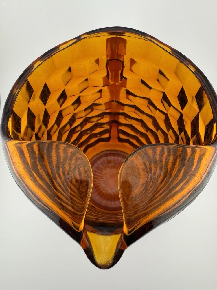 HomeVintage American Clear By Fostoria Large Amber Glass Pitcher Cube Pattern